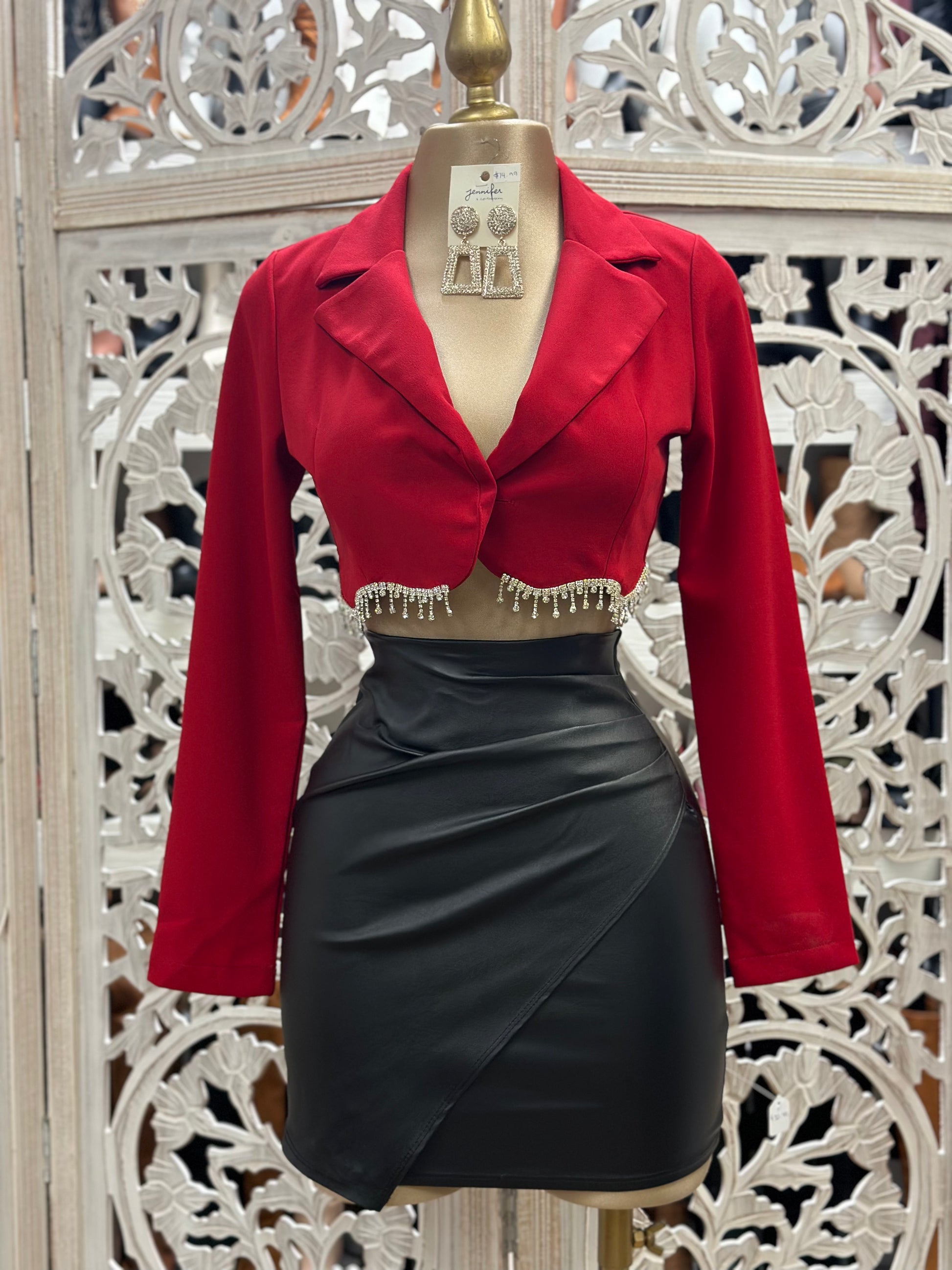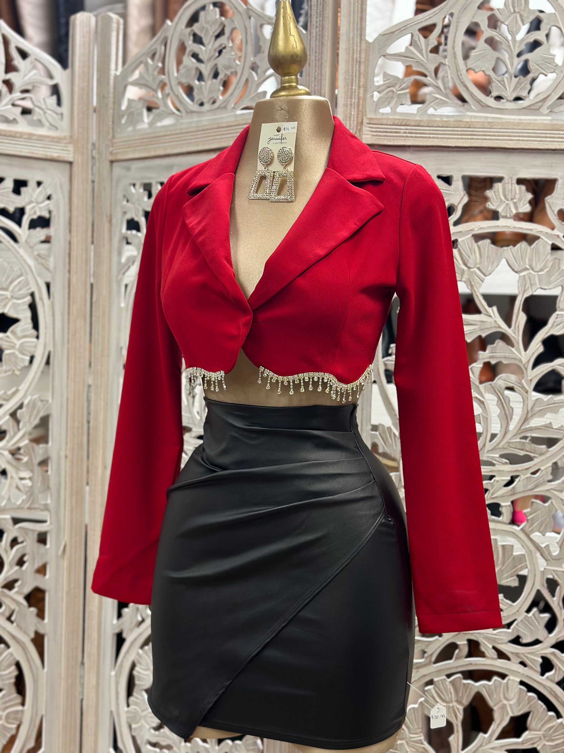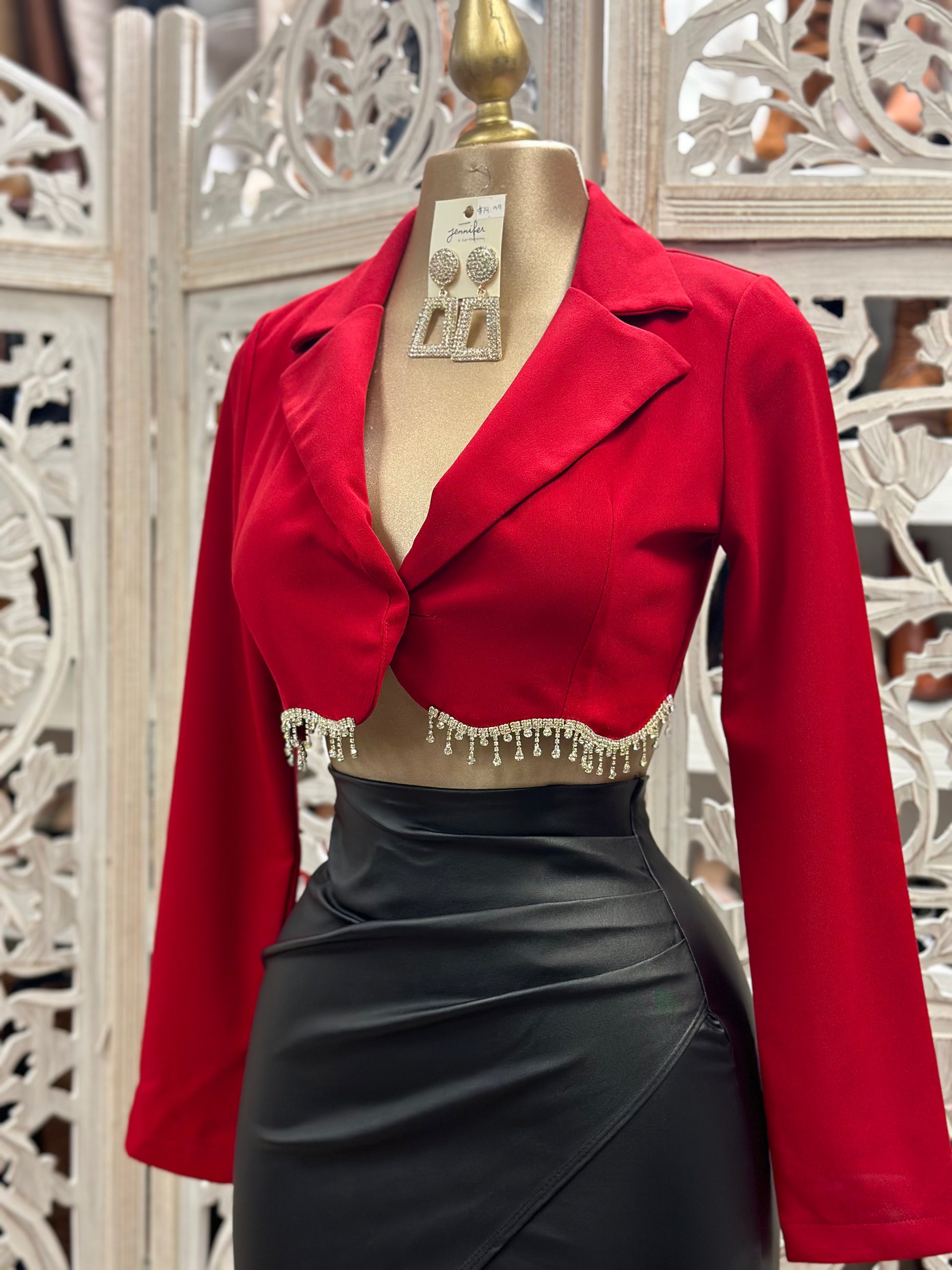 Rhinestone Fringe Cropped Blazer