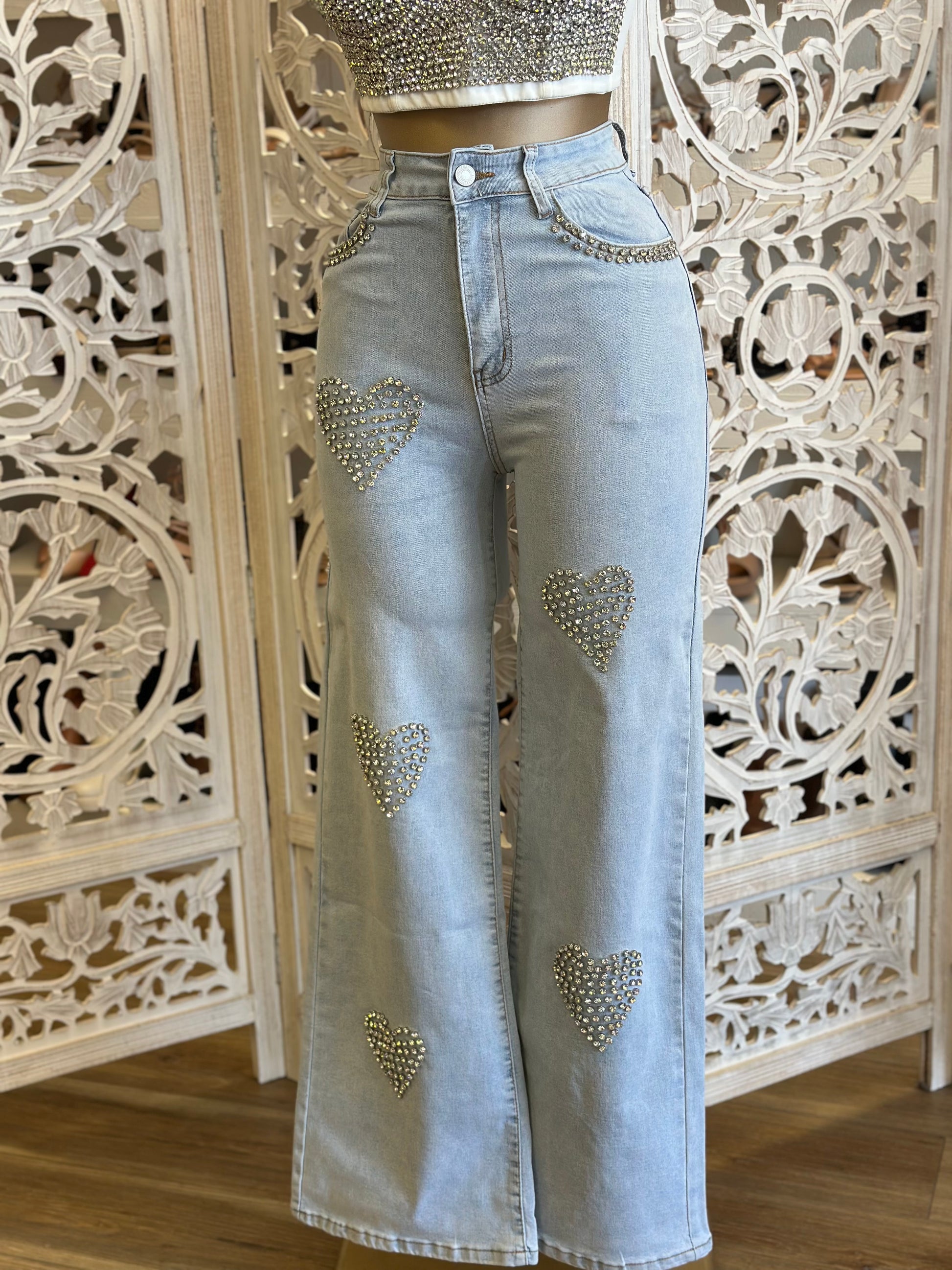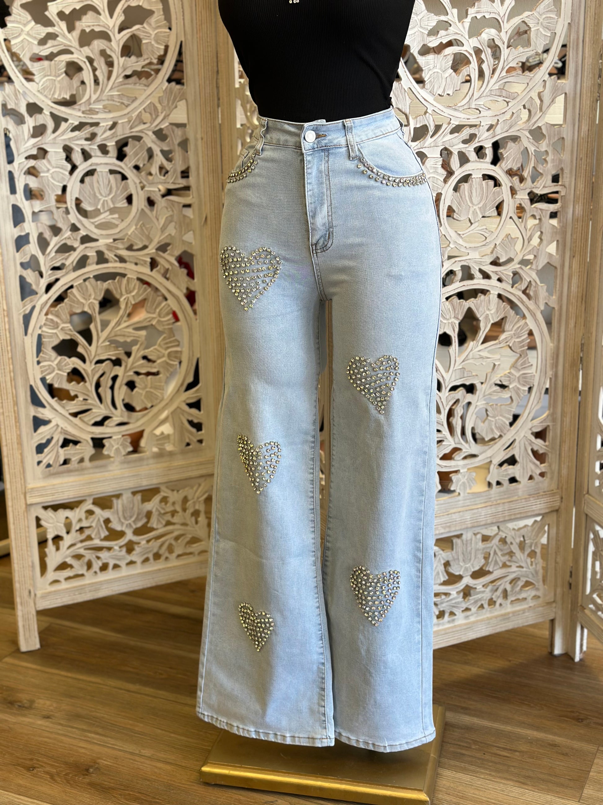 Rhinestone Heart Jeans- Stretchy