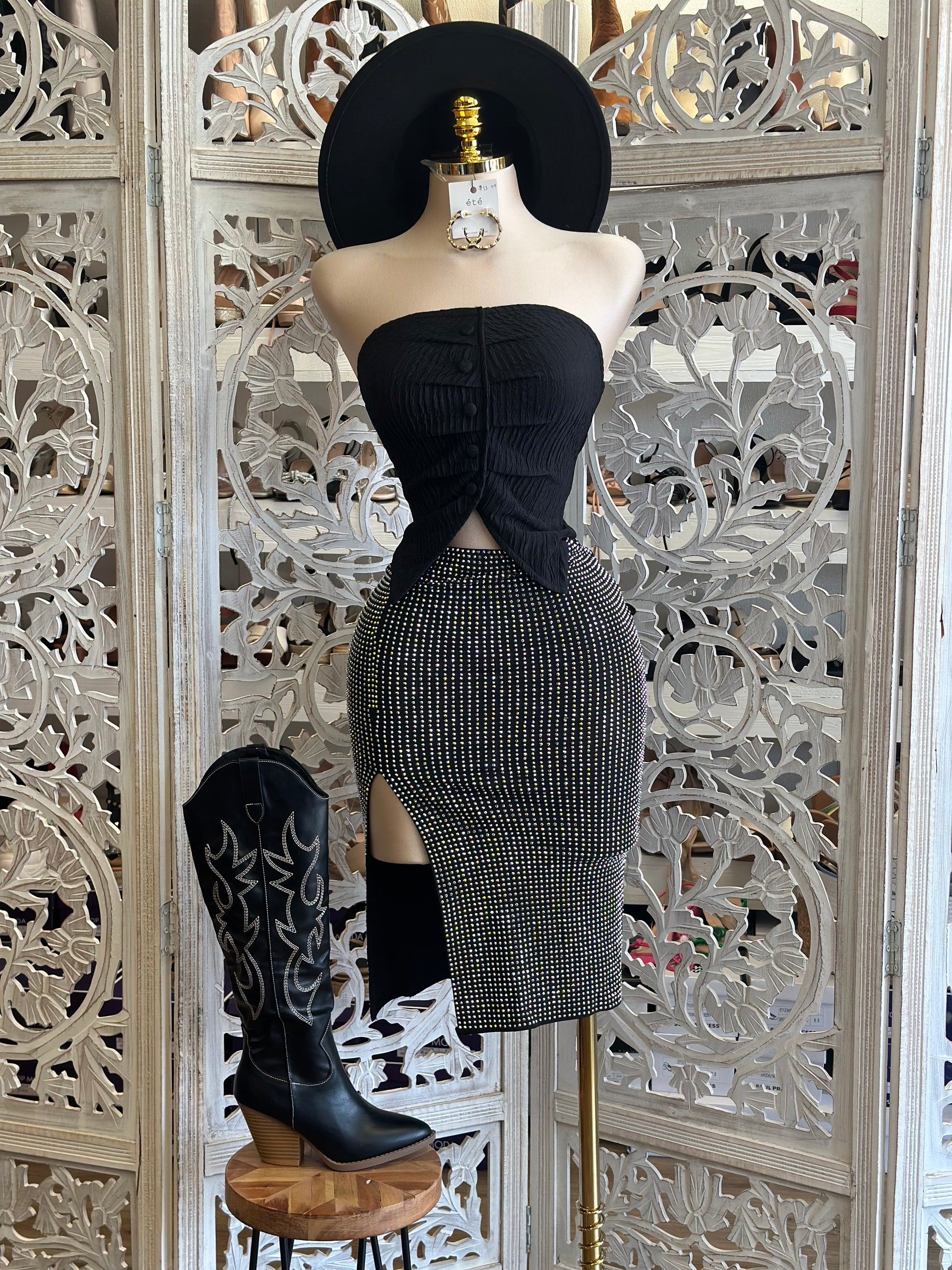 Rhinestone High Slit Skirt-Estira , Stretchy