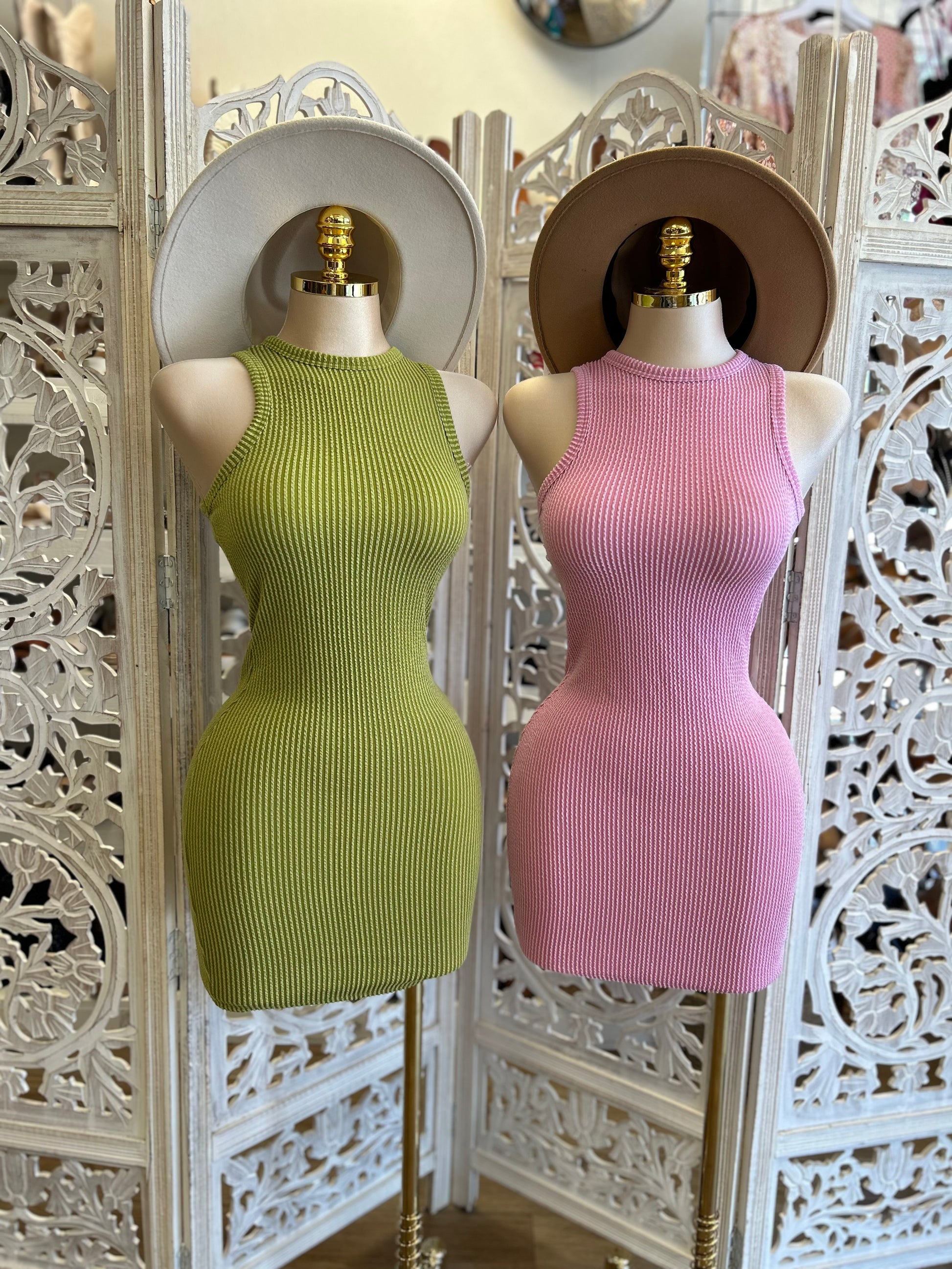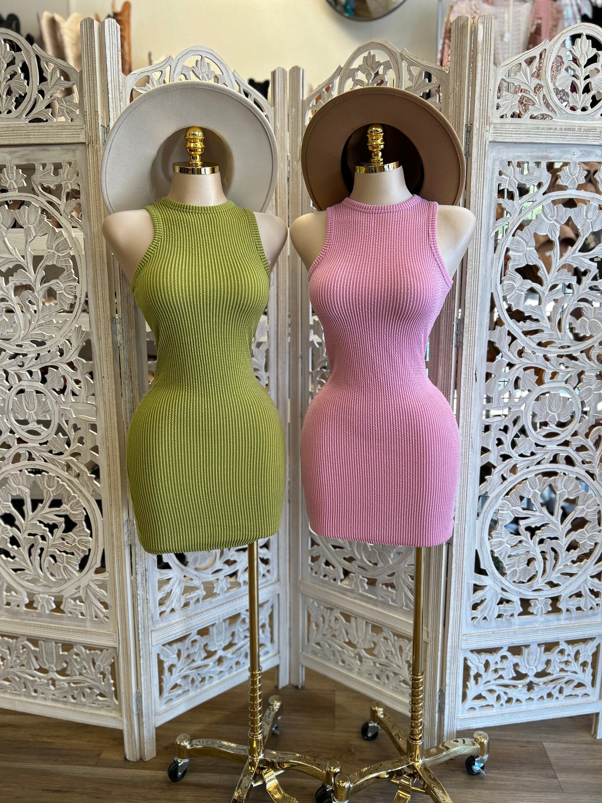 Ribbed Mock Neck Bodycon Dress- Estira, Stretchy