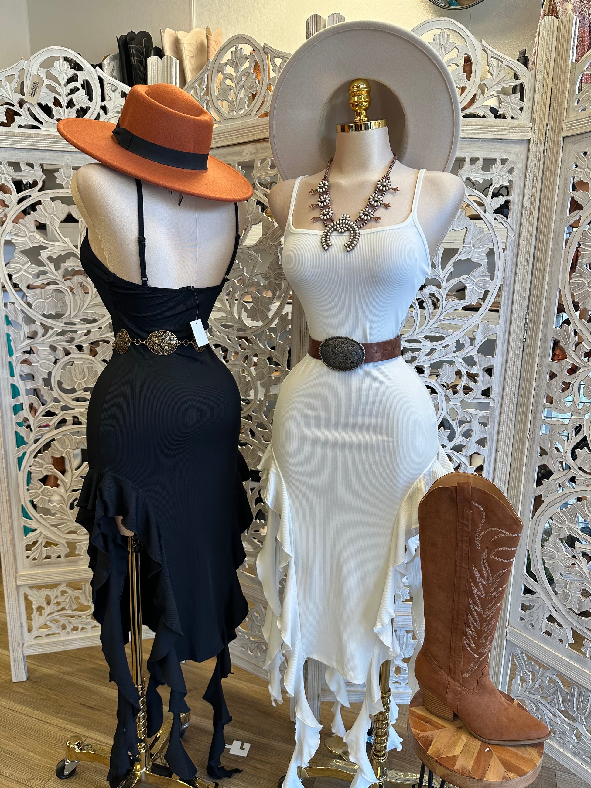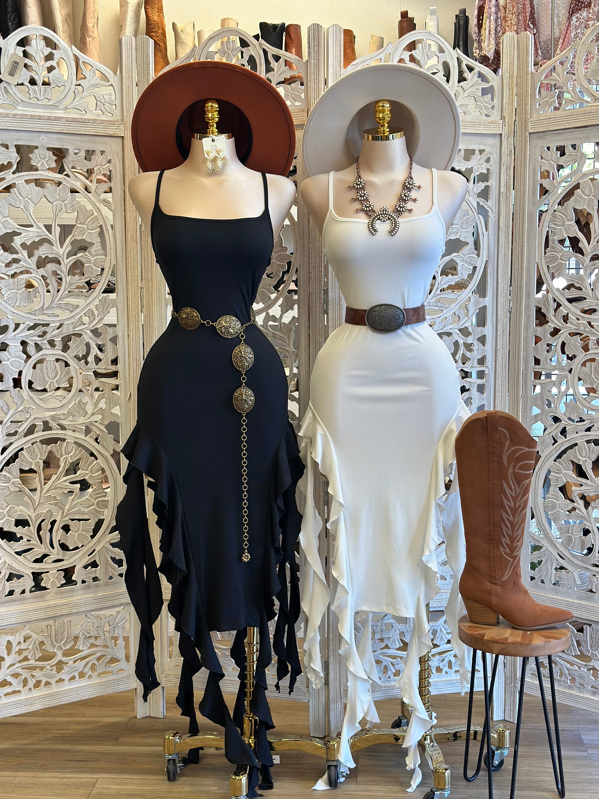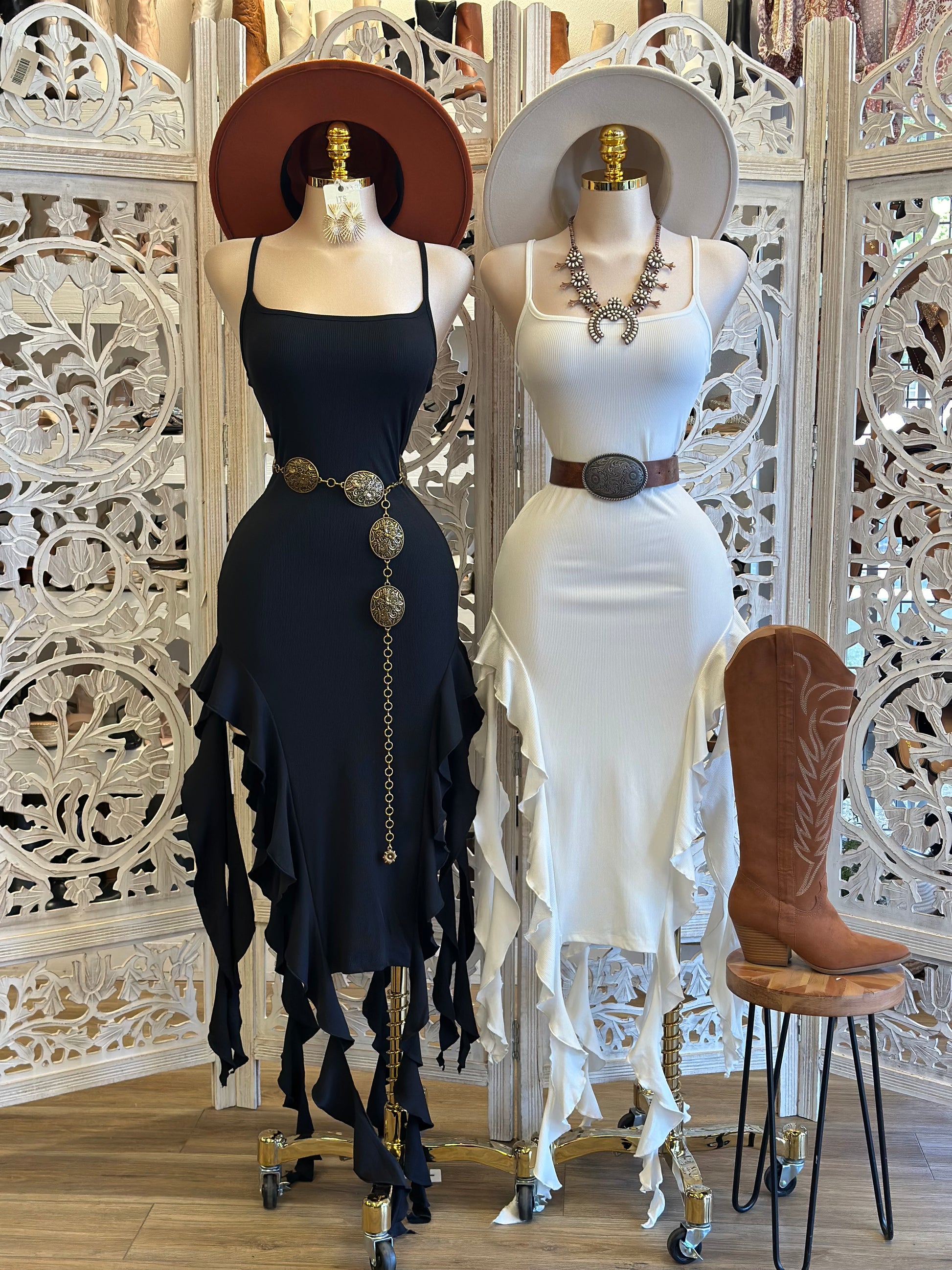 Ribbed Thin Strap Ruffled Dress - Estira, Stretchy