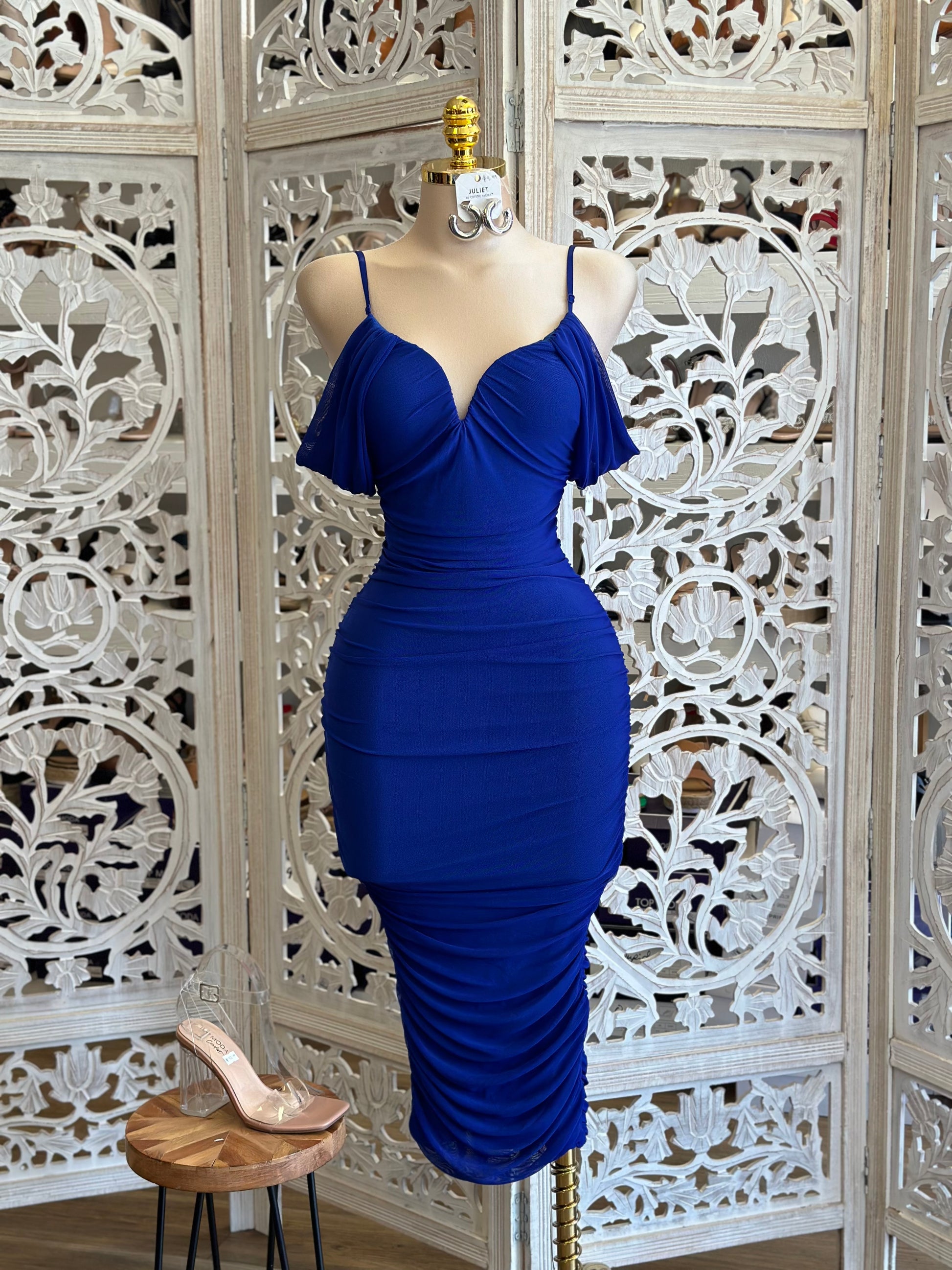 Royal Blue Mesh Midi Dress - Estira, Stretchy