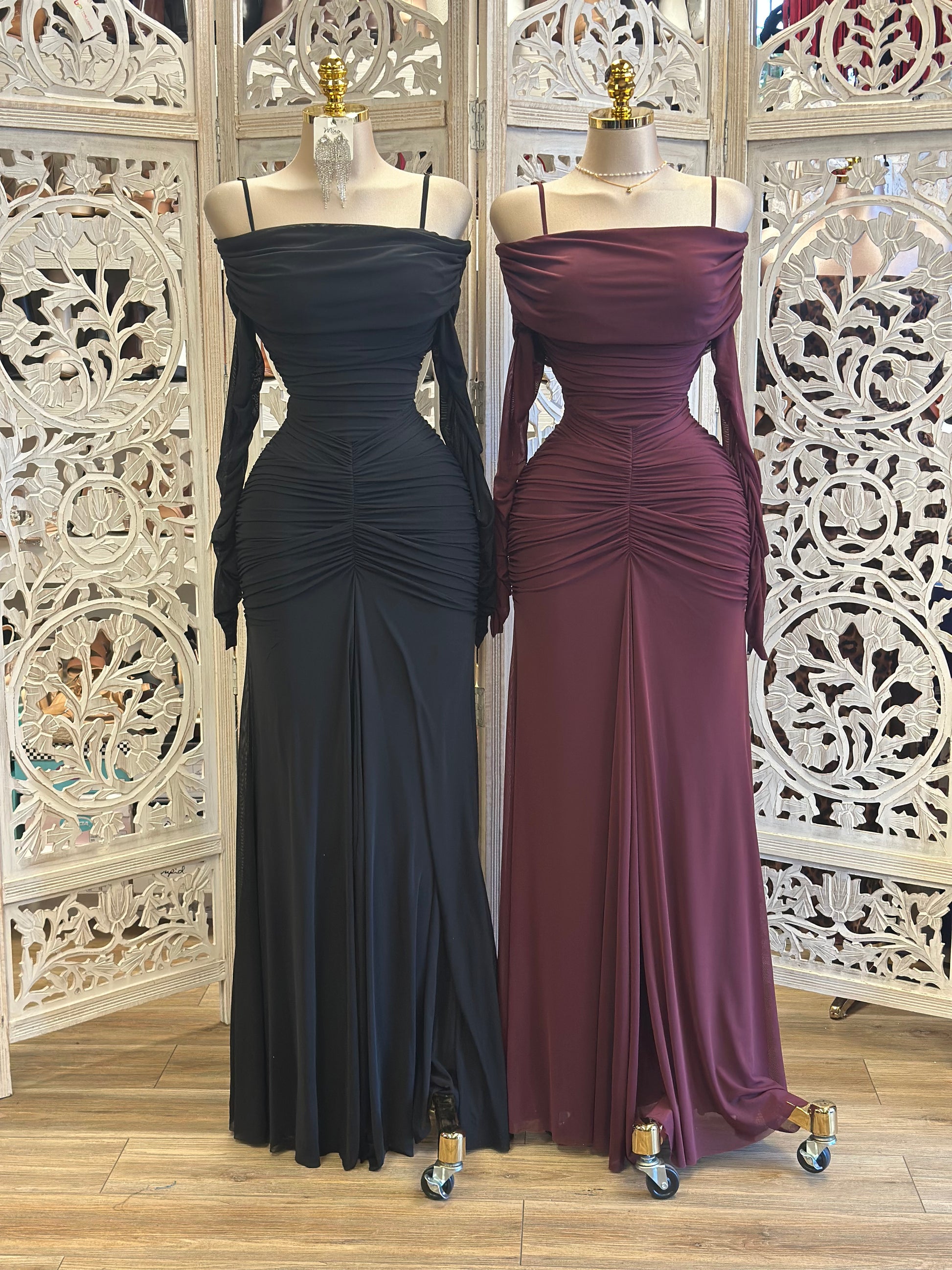 Ruched Off Shoulder Maxi Dress- Stretchy,Estira