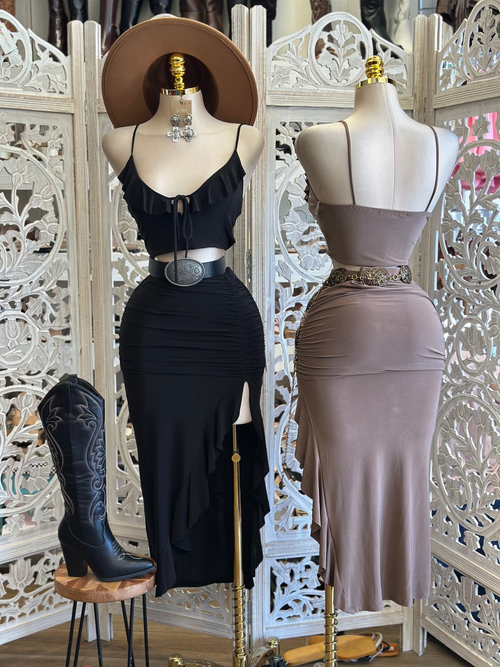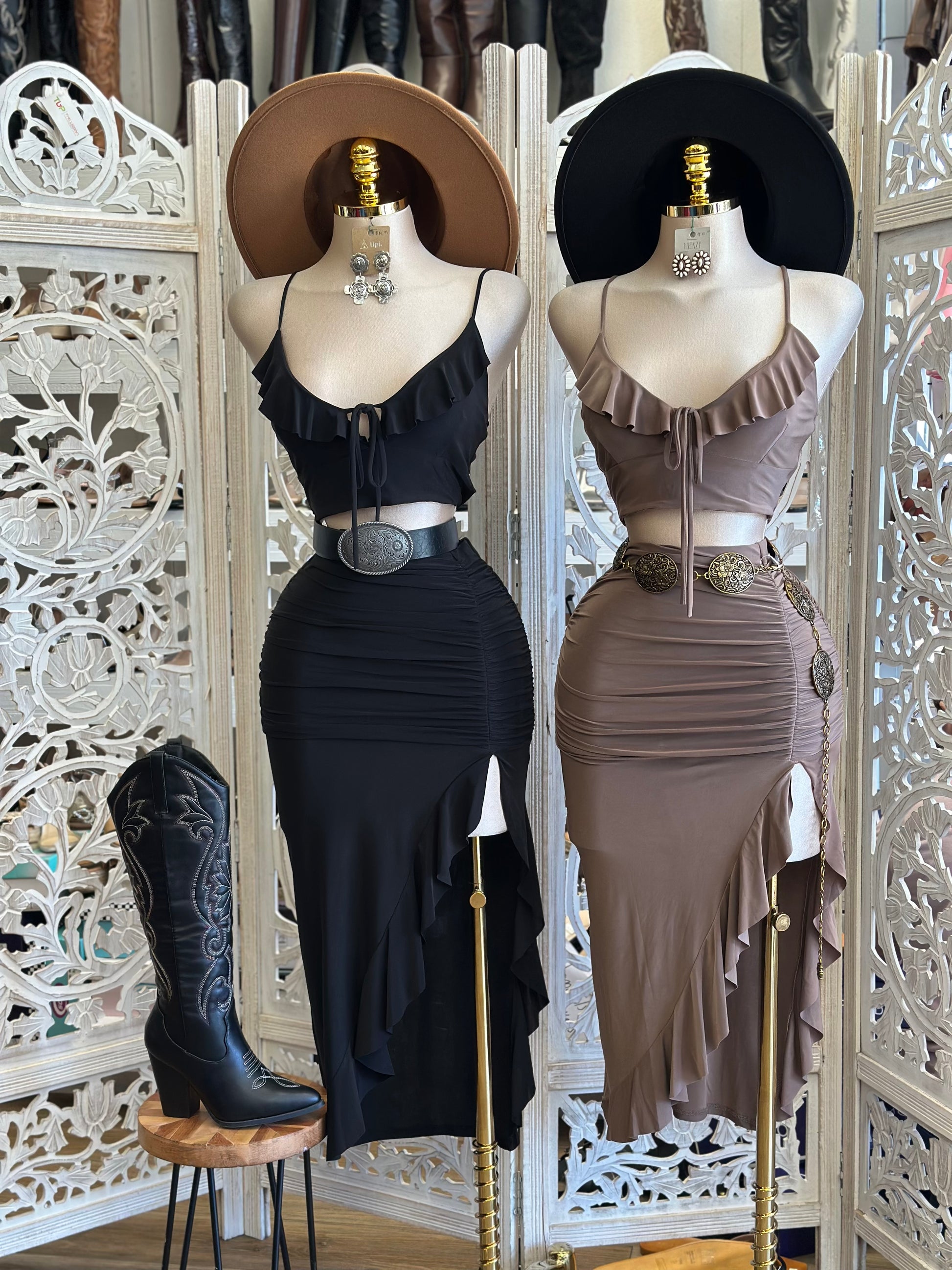 Ruffle Solid Skirt Set- Estira,Stretchy