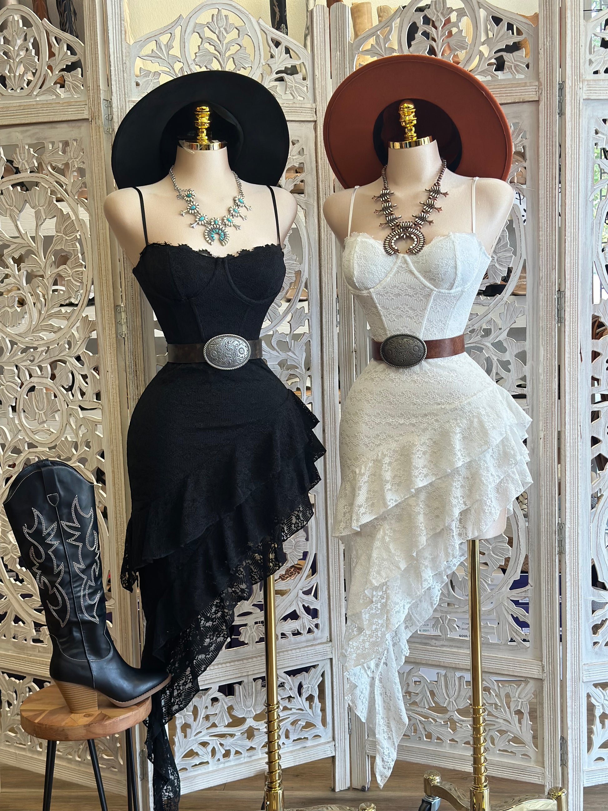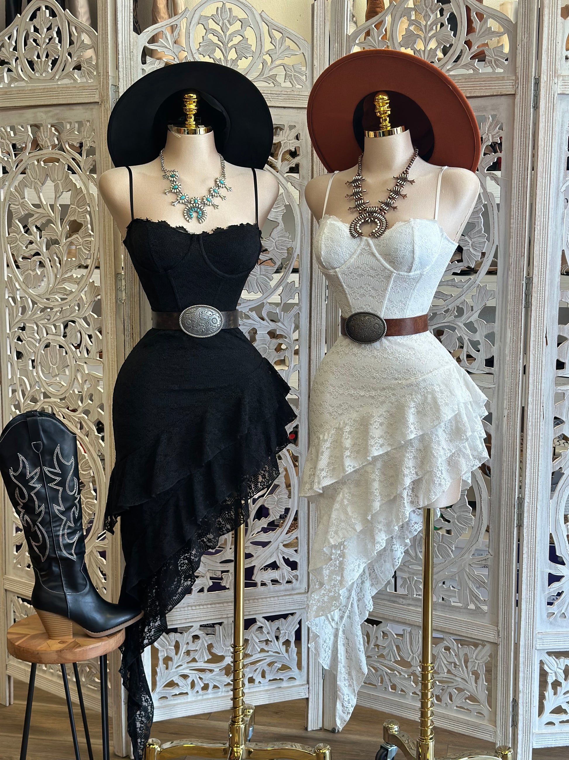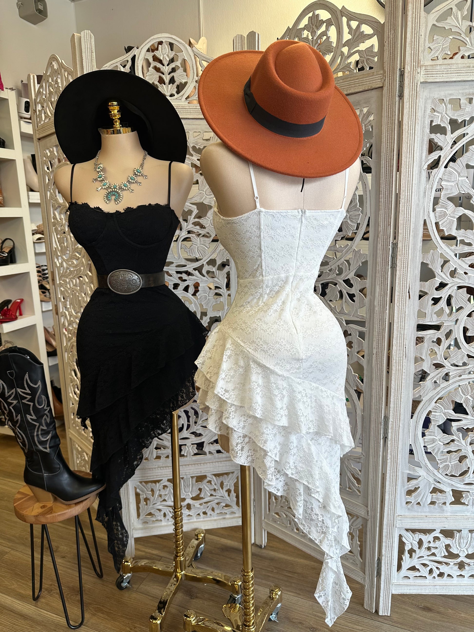 Ruffled Lace High Low Dress- Stretchy, Estira poco