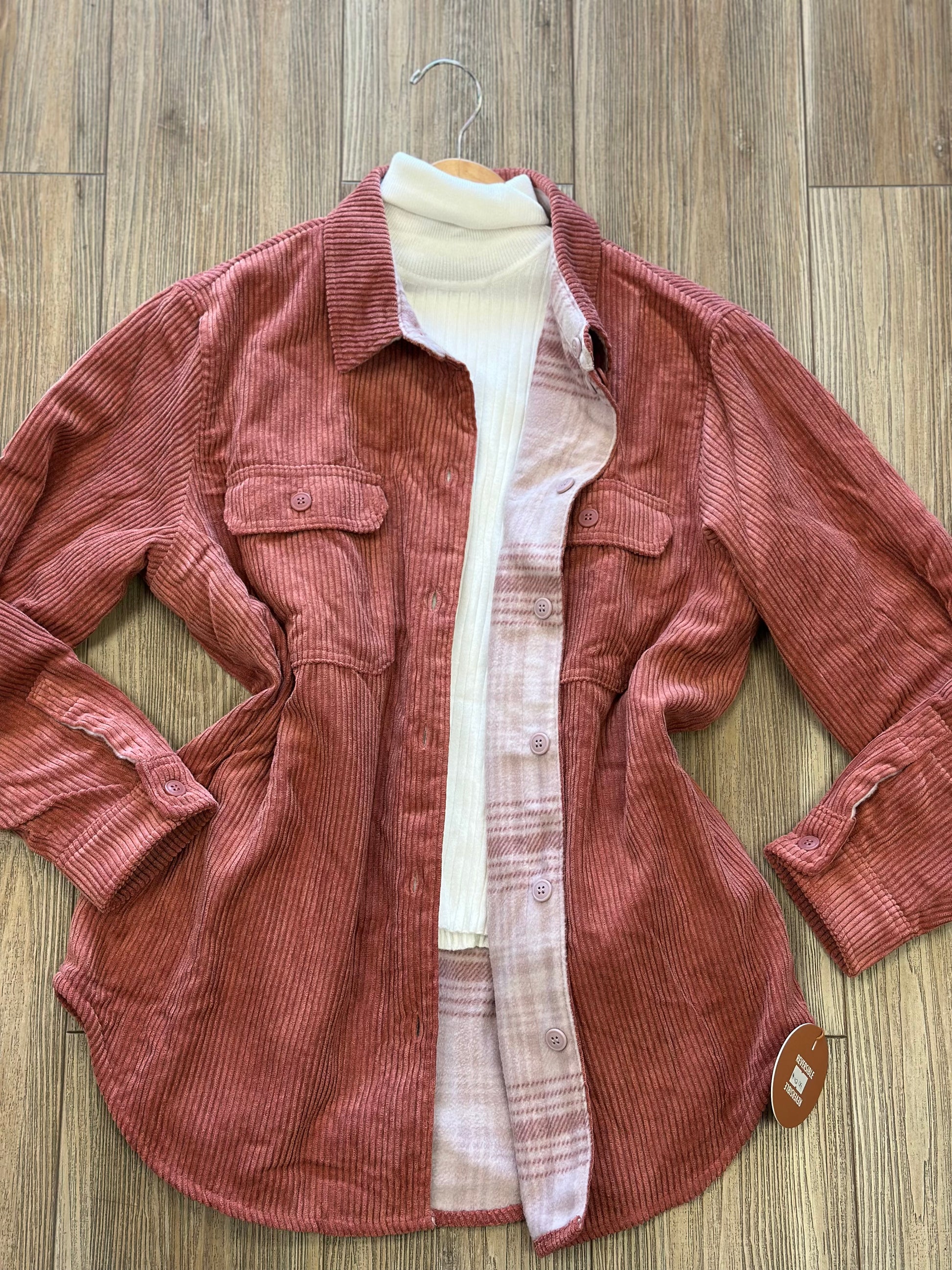 Rust Corduroy Reversible Flannel Jacket- Stretchy, Estira
