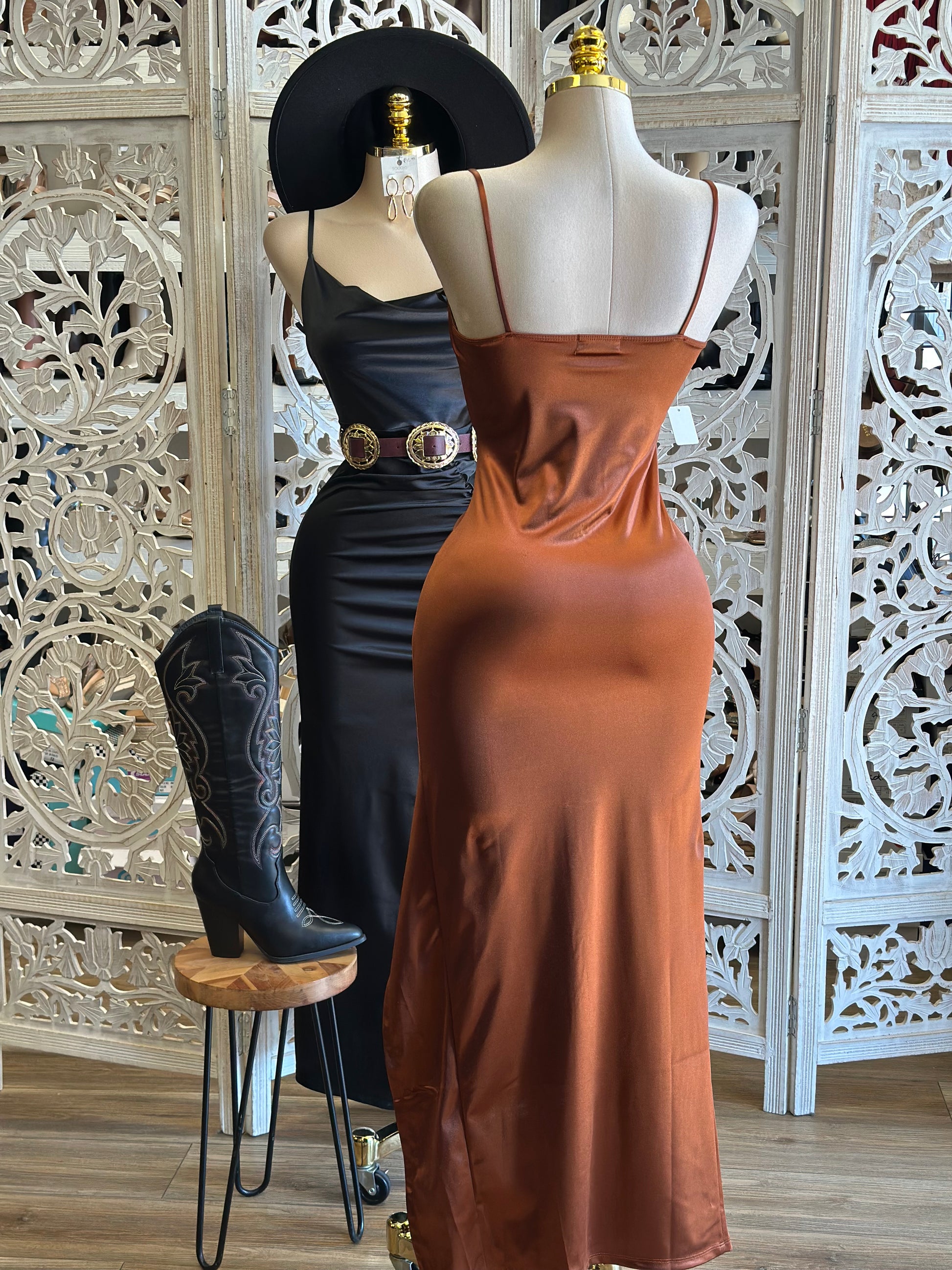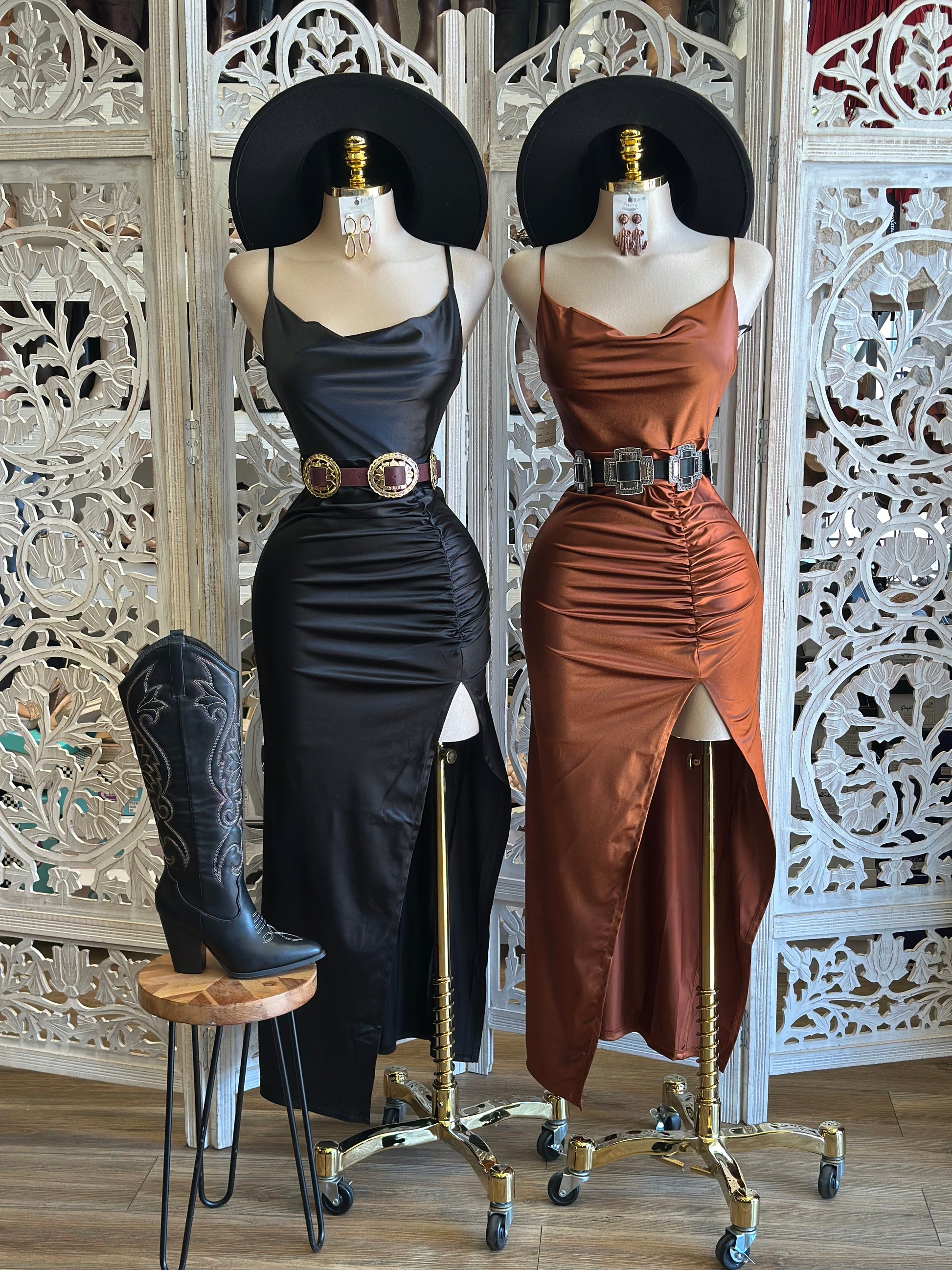 Satin Dream Cami Ruched Dress- Stretchy,Estira