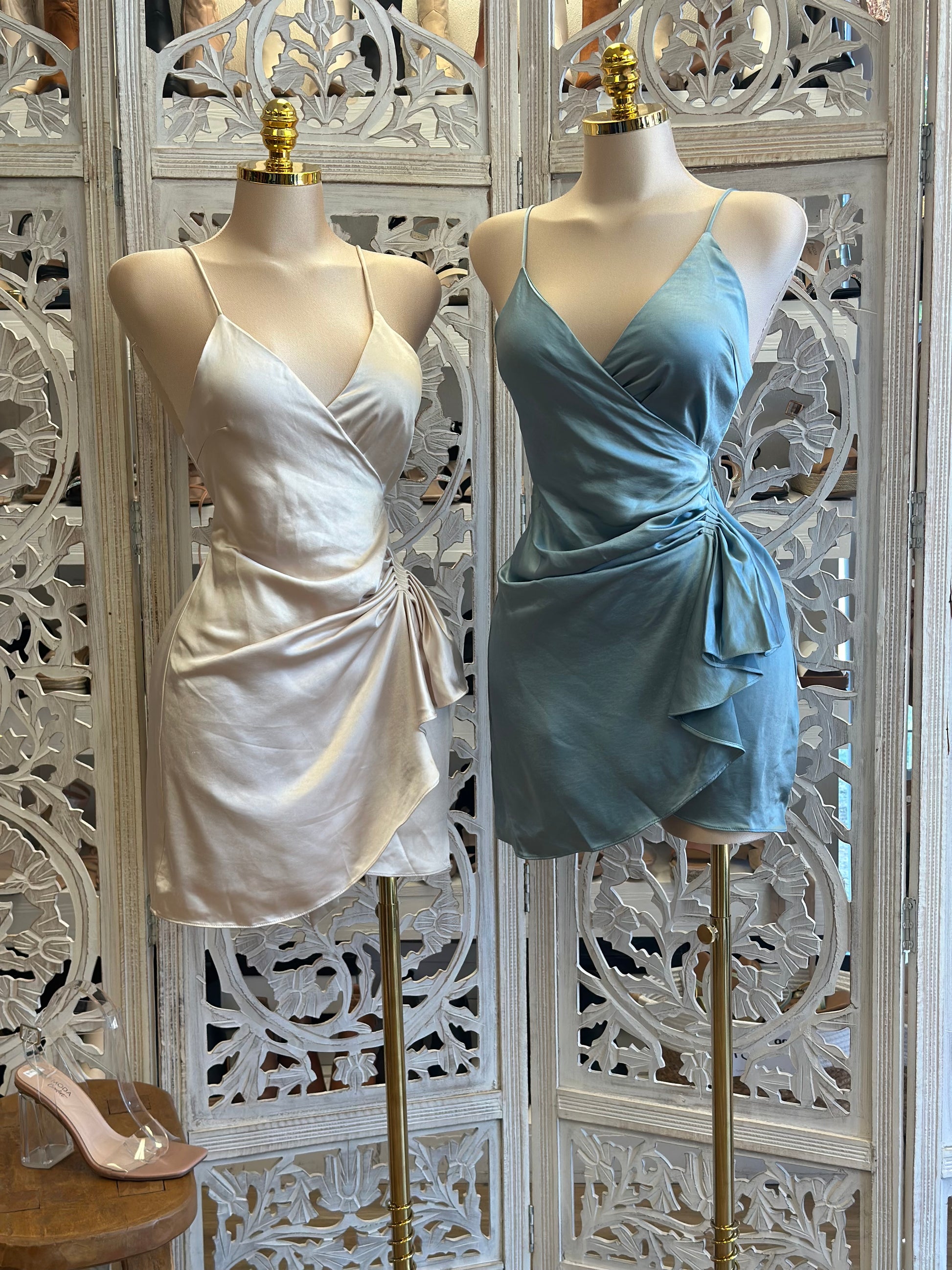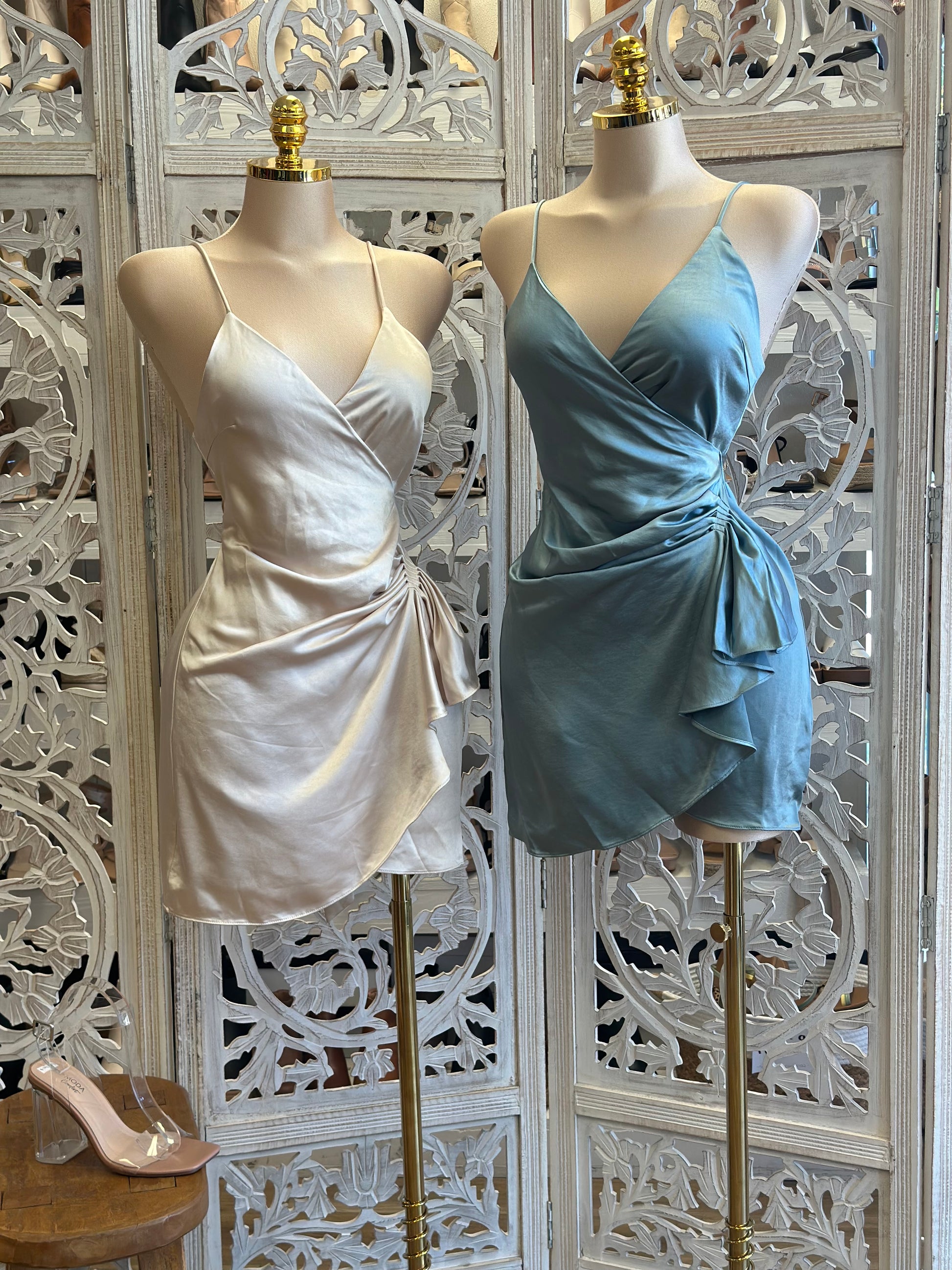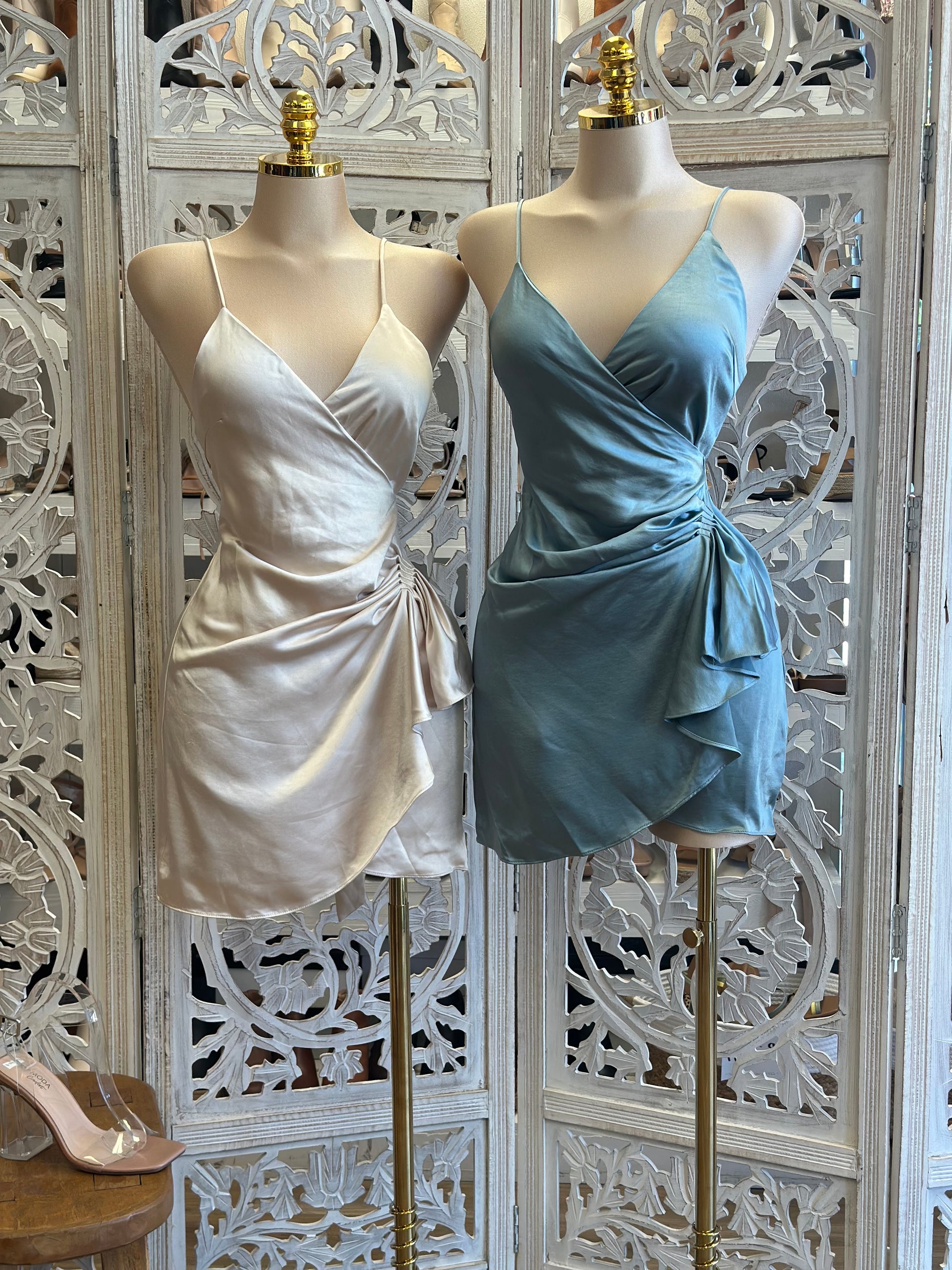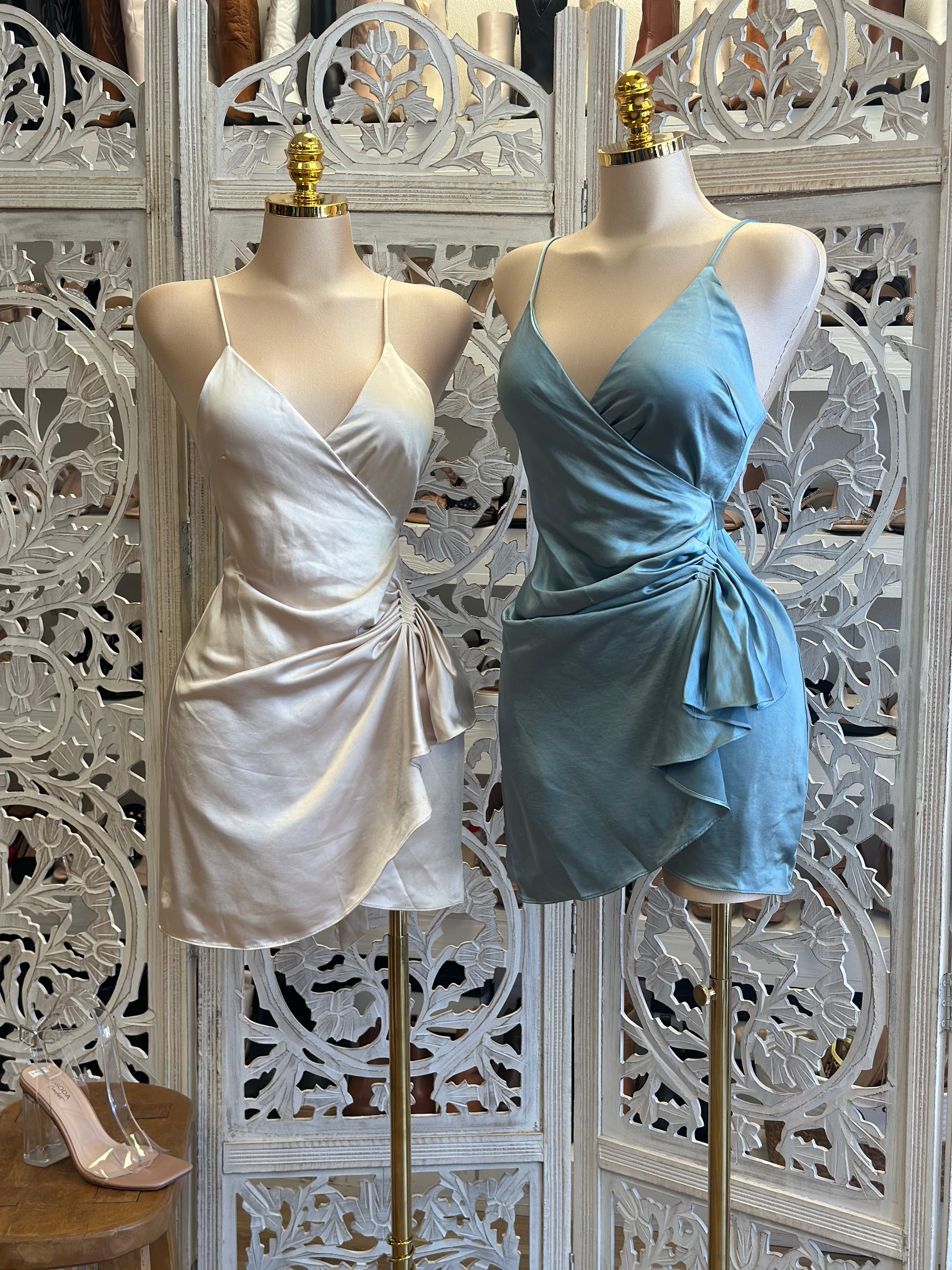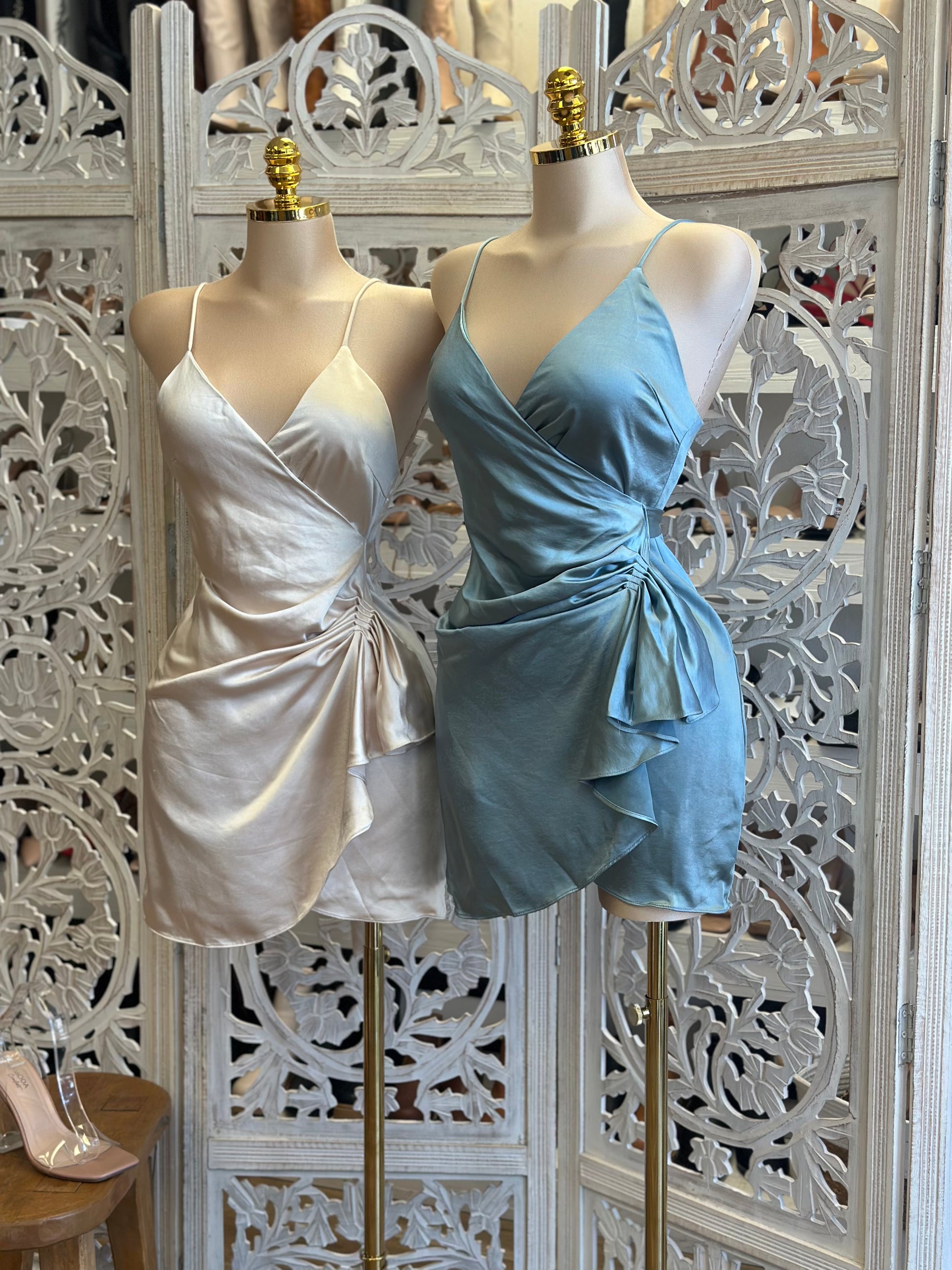 Satin Wrapped Mini Dress- Not Stretchy, No Estira