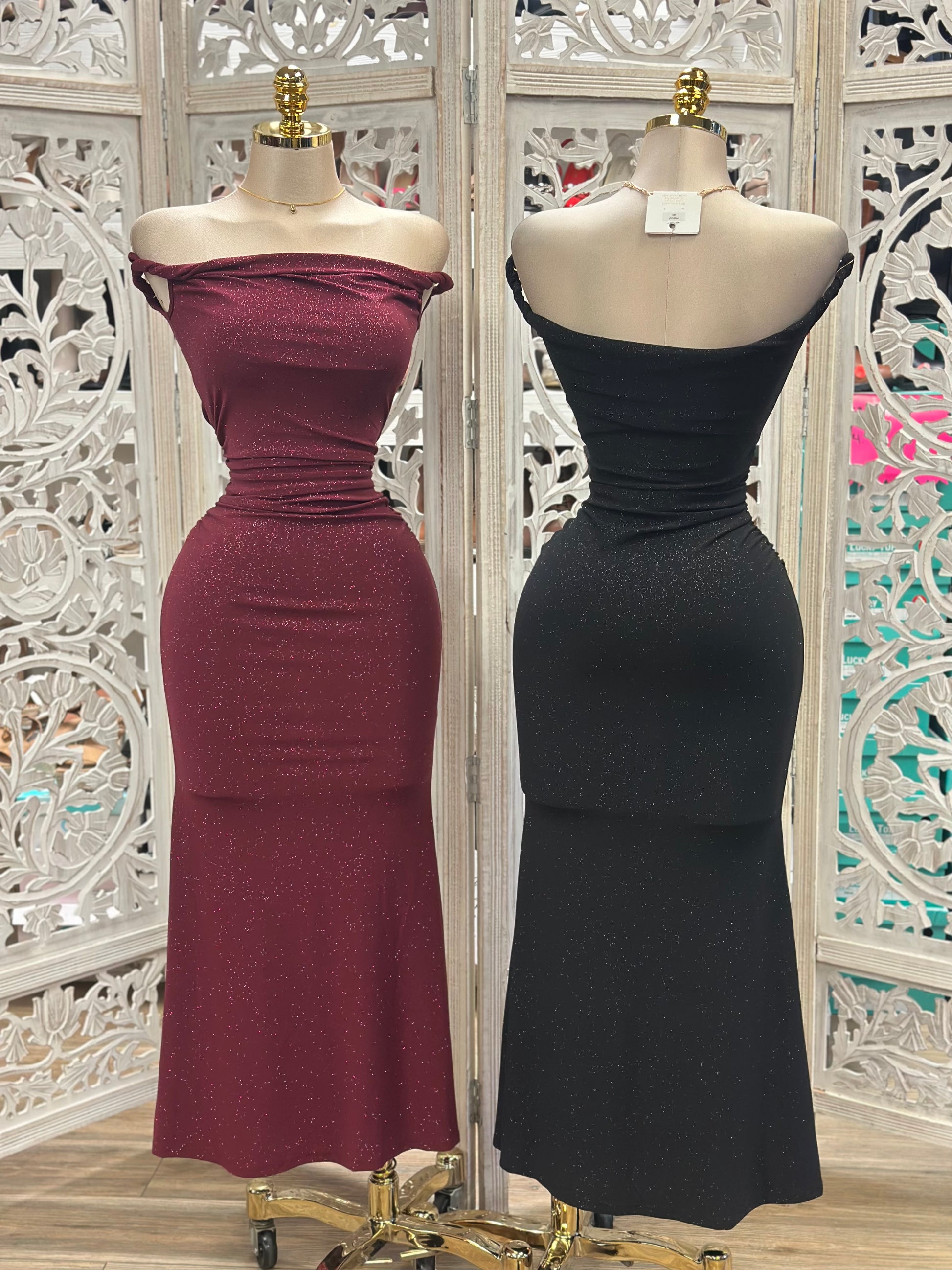 Sleek Off Shoulder Evening Dress- Stretchy,Estira