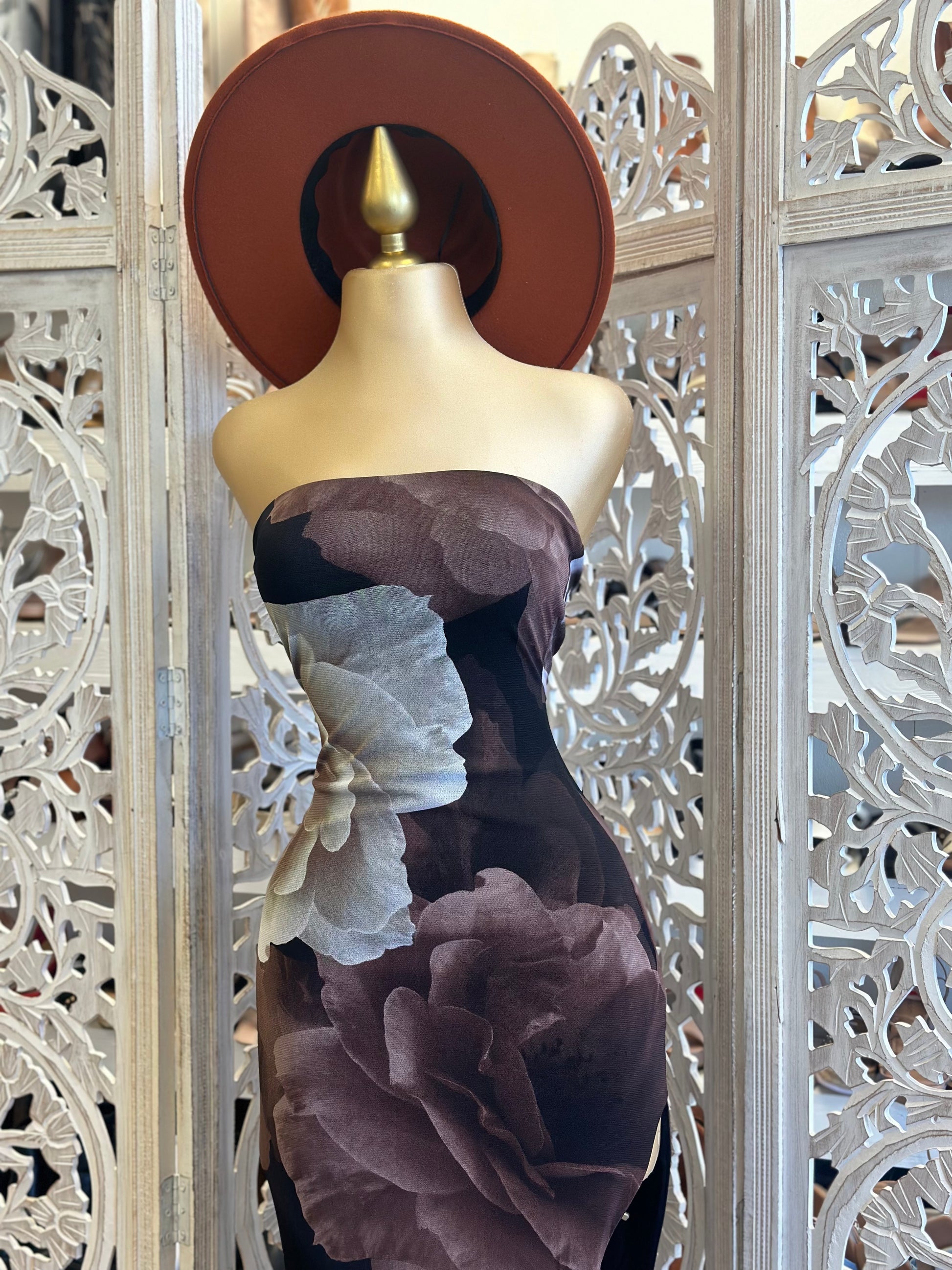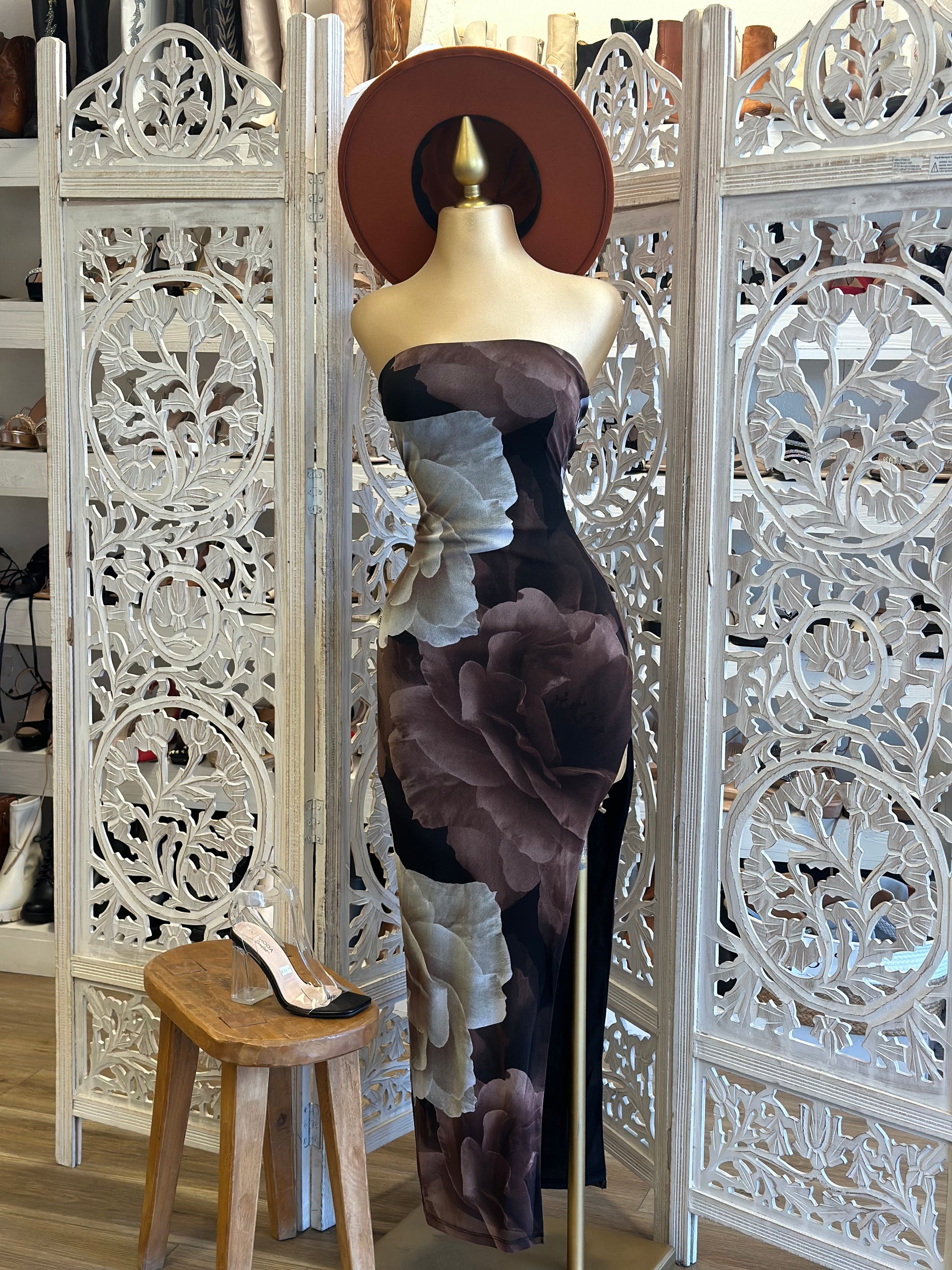 Strapless Enlarges Flower Pattern Dress-Estira, Stretchy