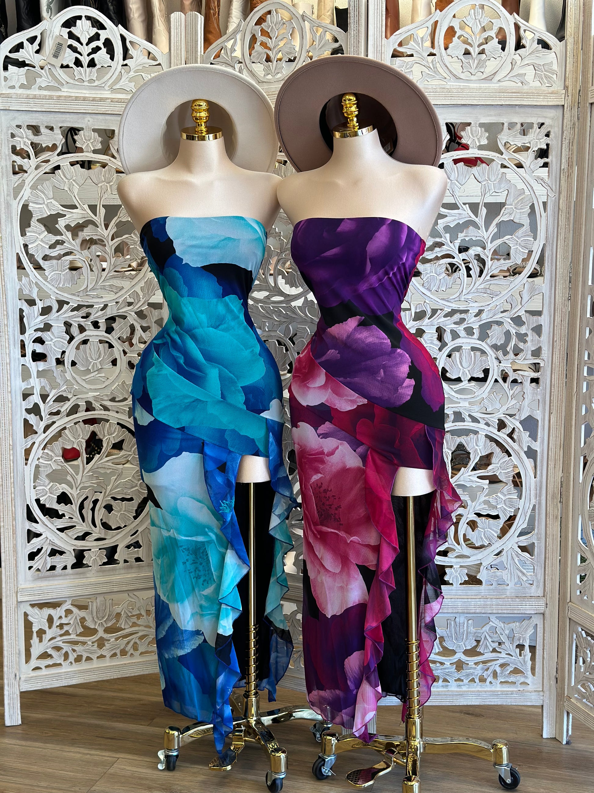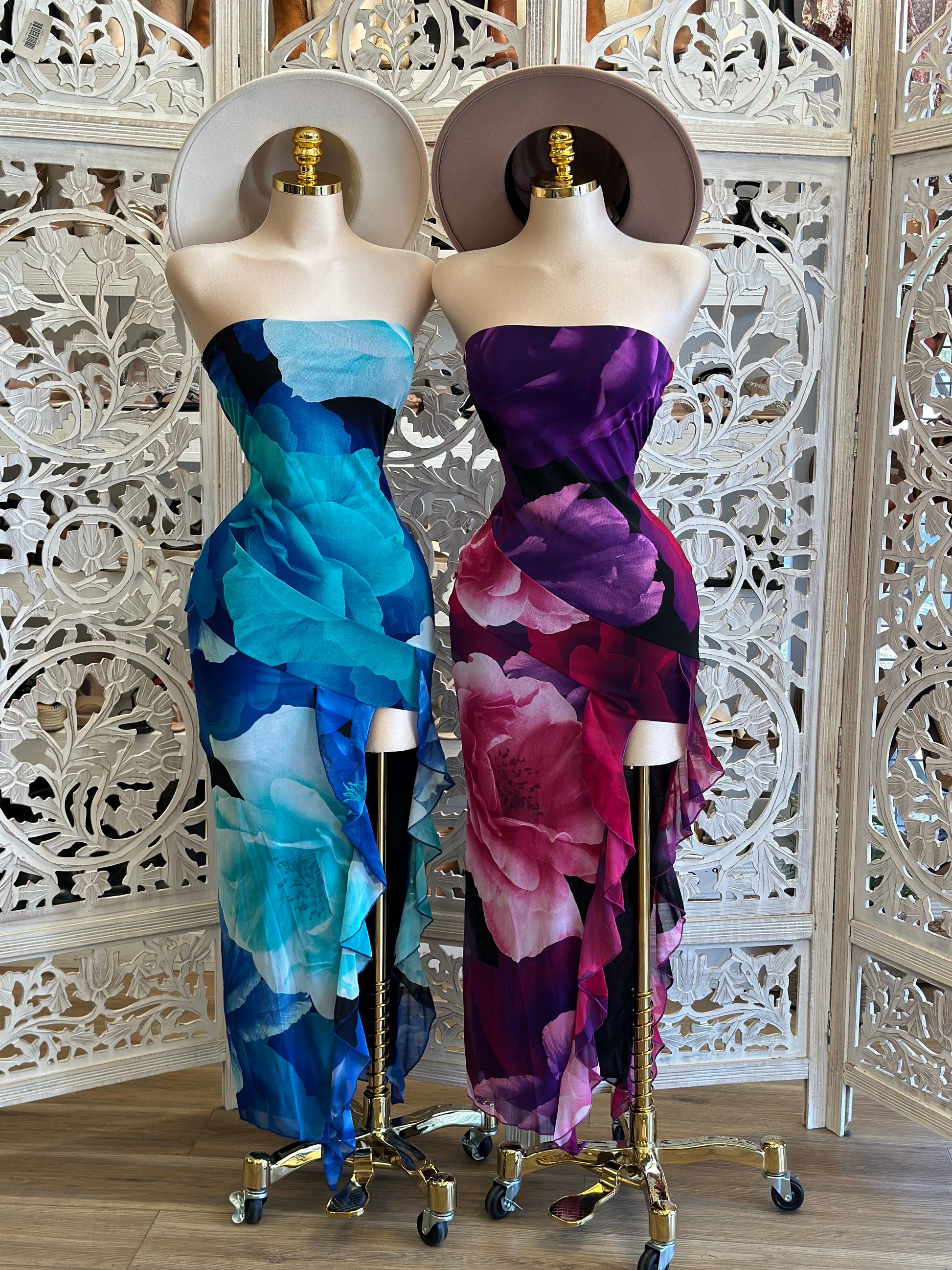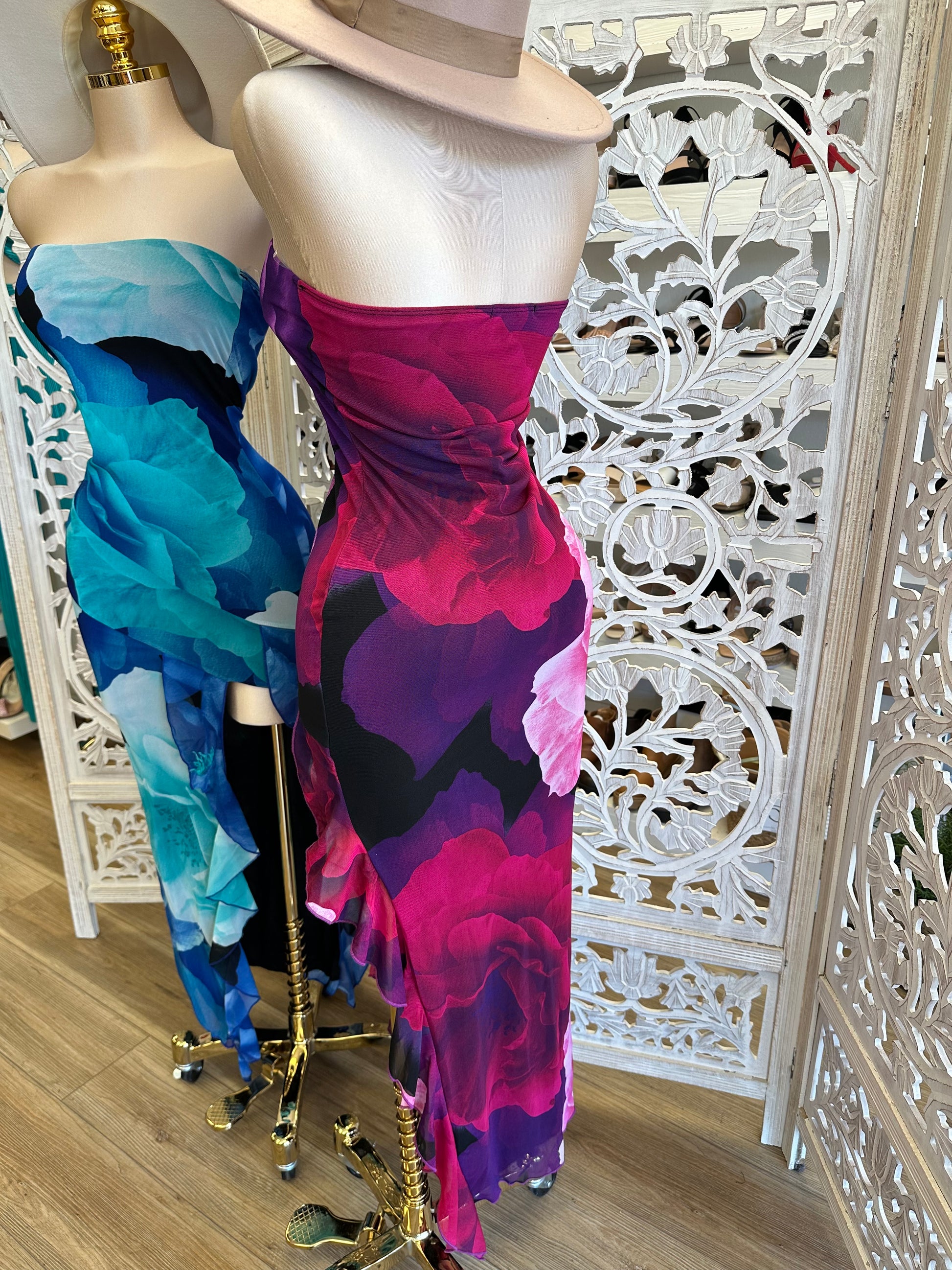 Strapless Giant Flower Pattern Dress - Estira, Stretchy