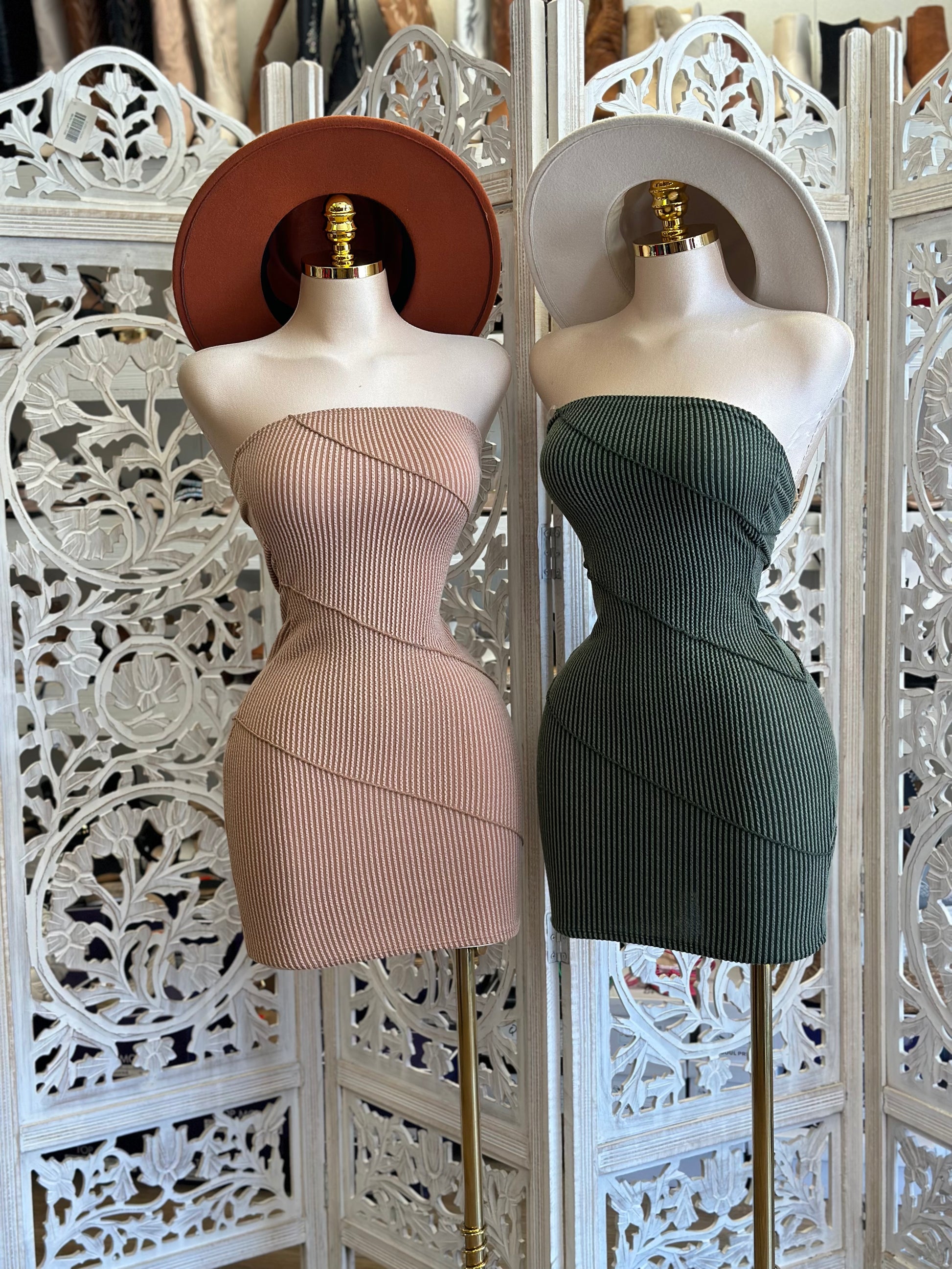 Strapless Ribbed Mini Dress- Stretchy, Estira