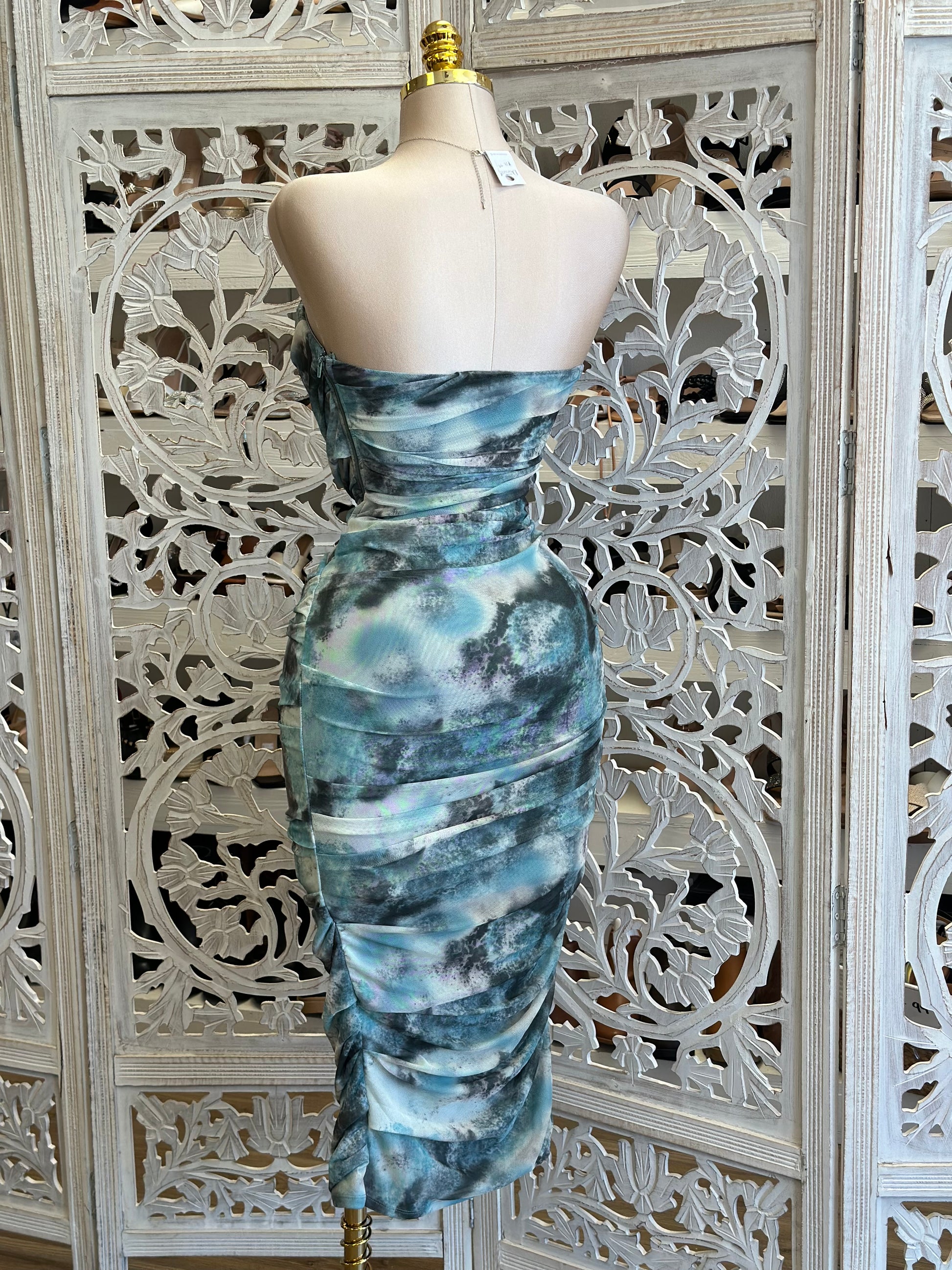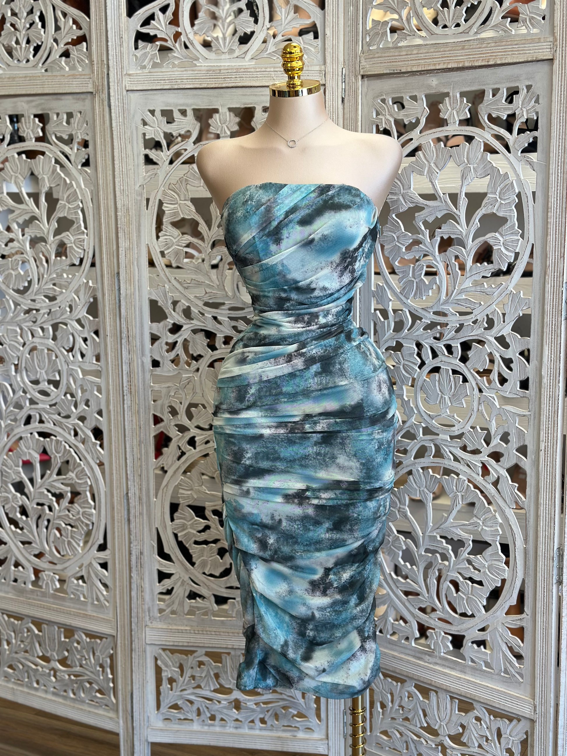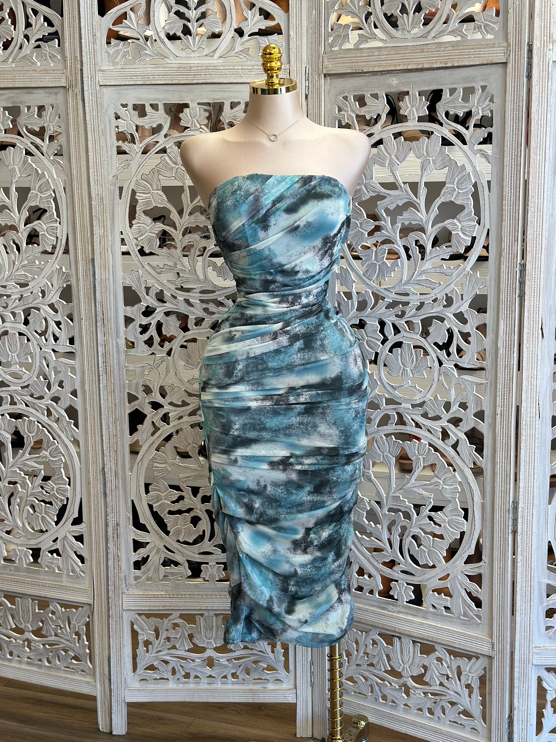 Strapless Ruched Multi Pattern Dress - Estira, Stretchy