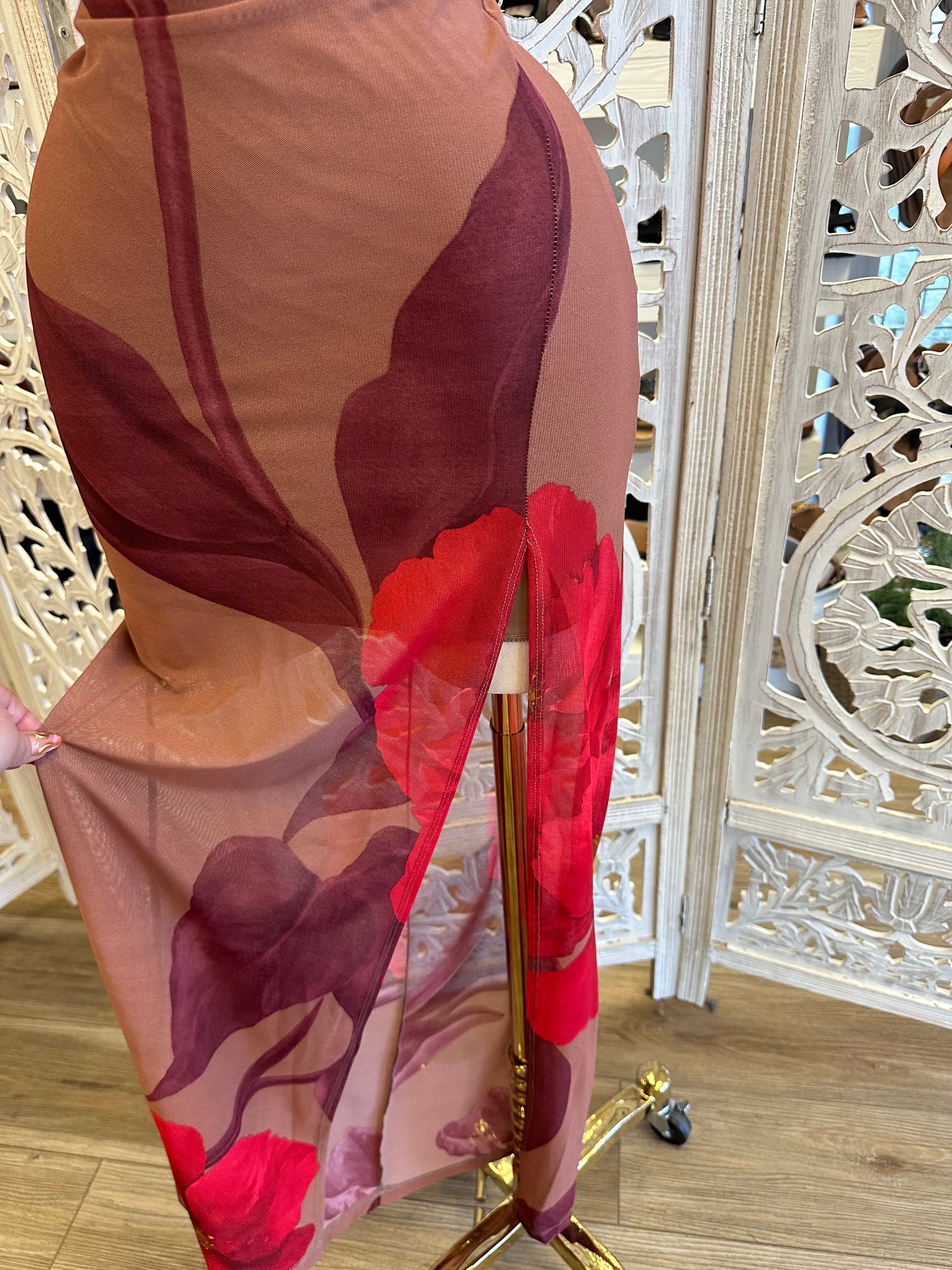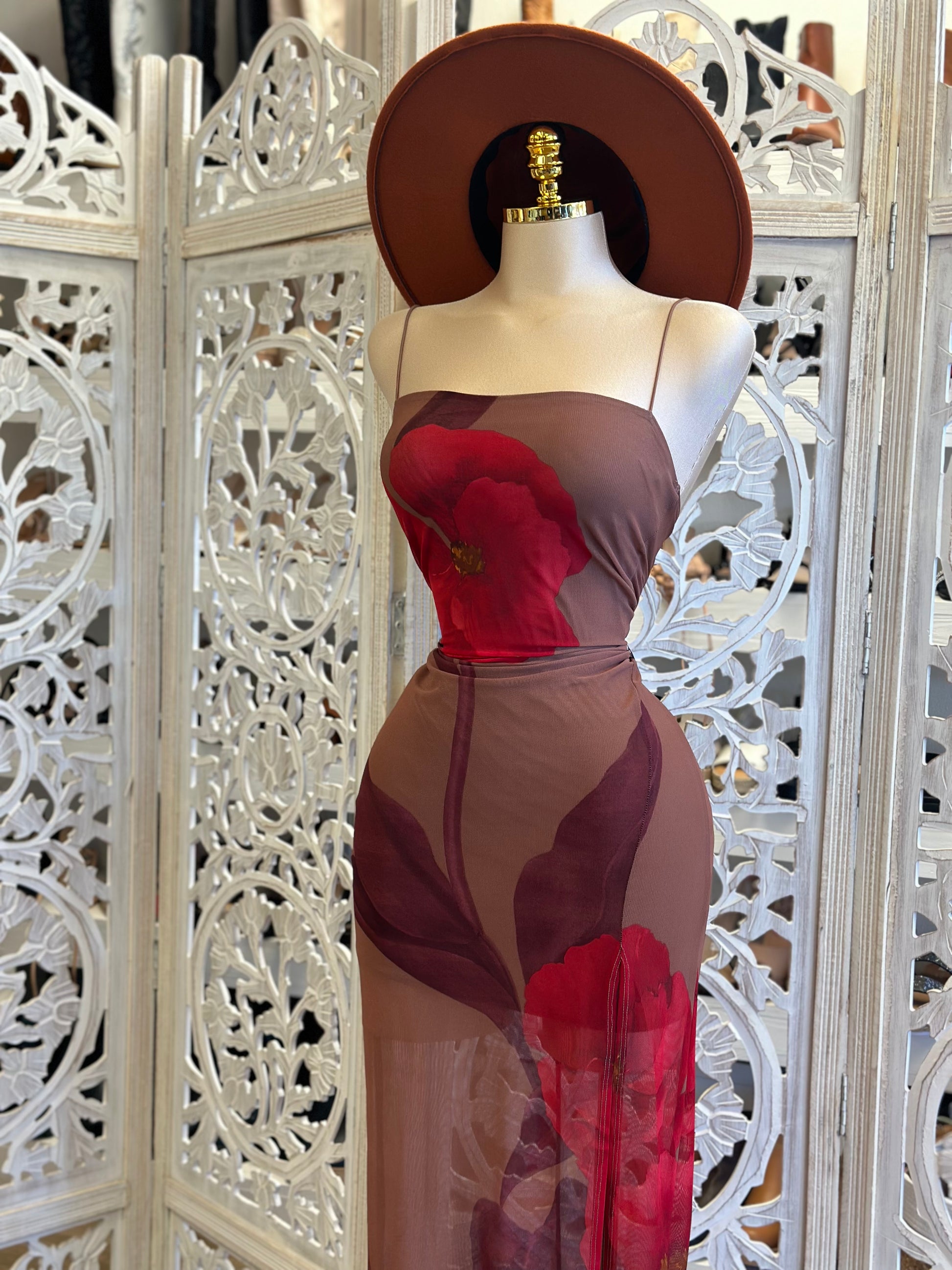 Thin Strap Rust Cutout Ruffle Dress - Estira, Stretchy