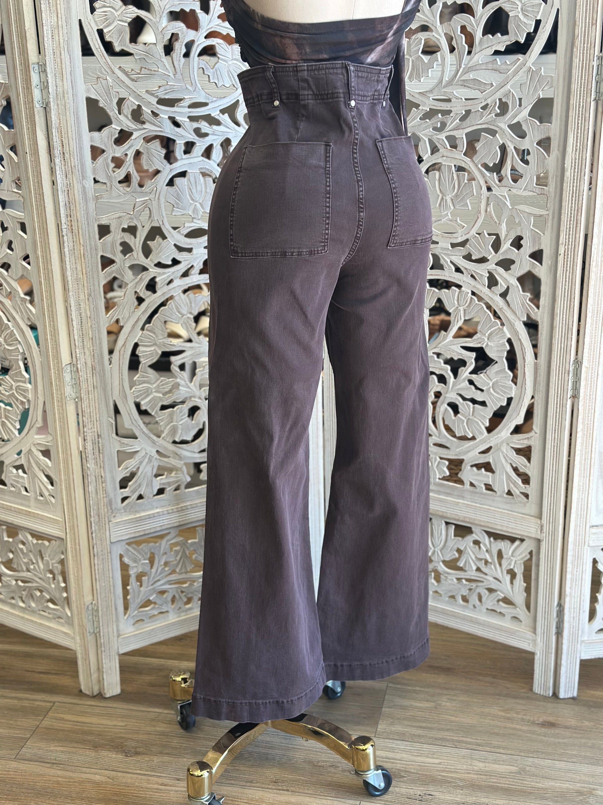 Ultra High Rise Wide Brown Washed Jeans - Stretchy, Estira