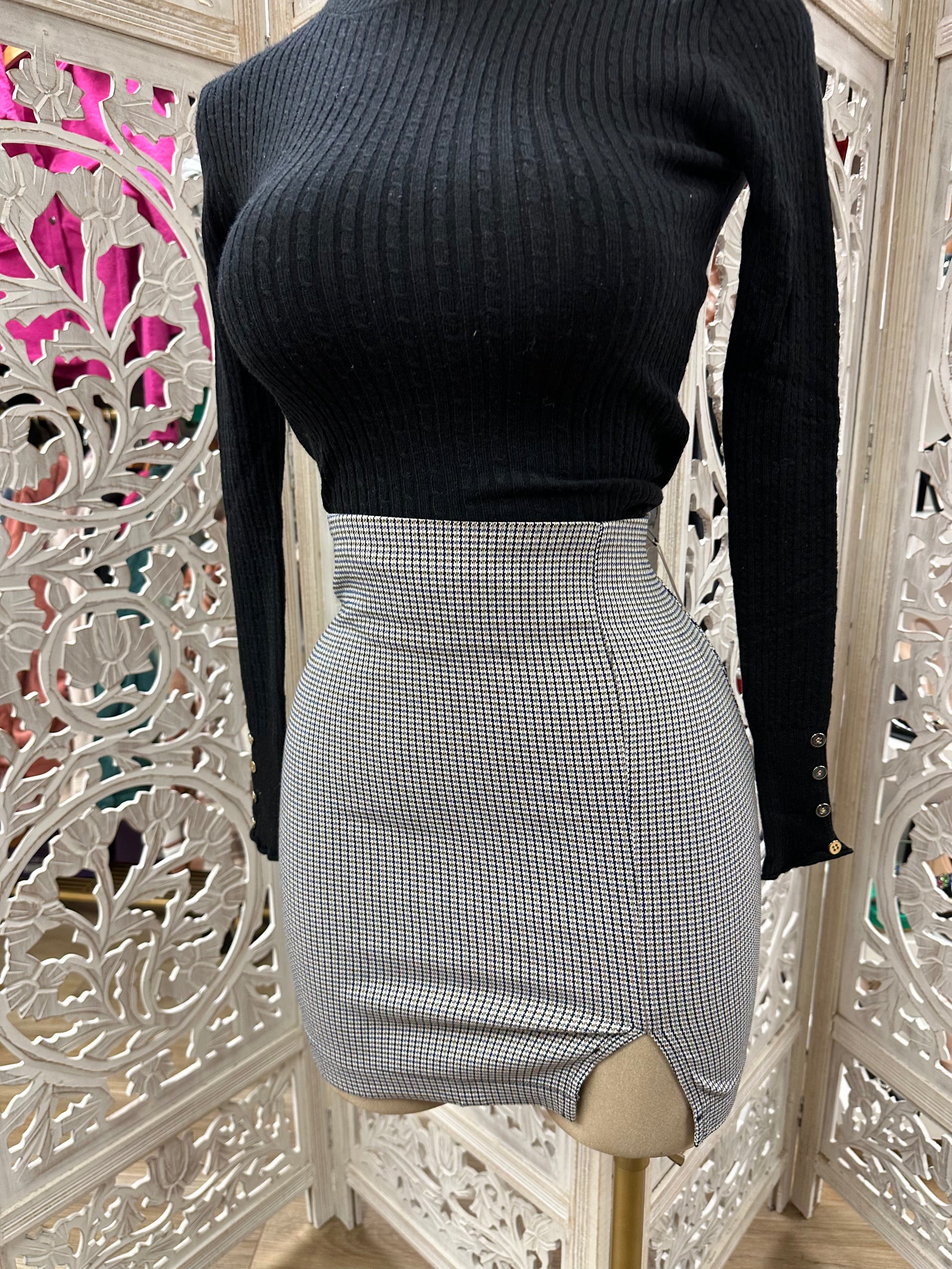 White and Black Mini Plaid Skirt